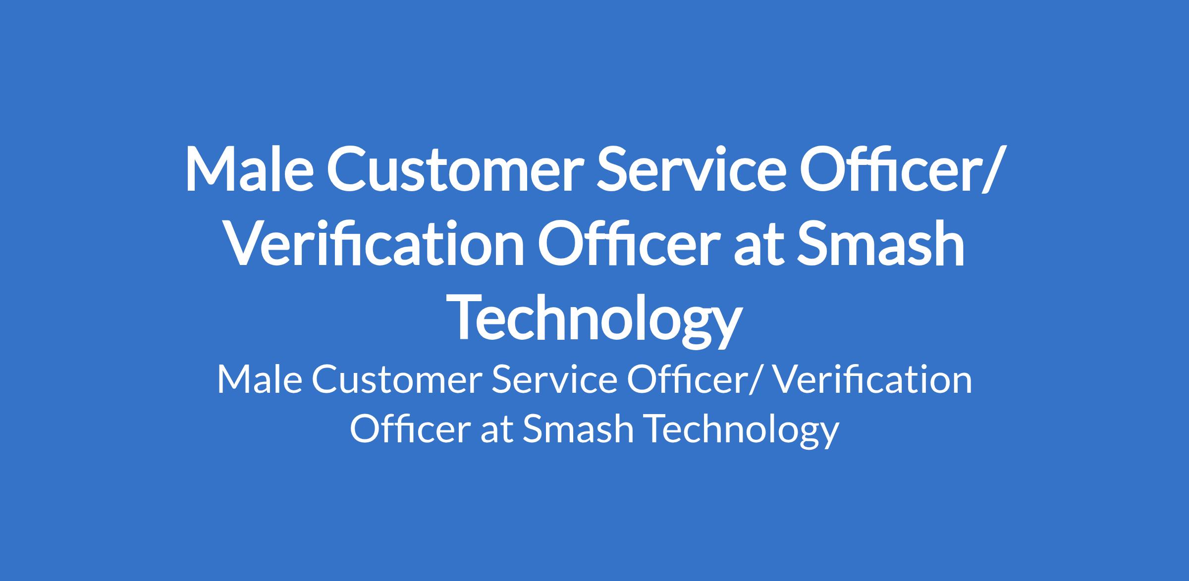 Smash Technology is recruiting to fill the position of: Male Customer Service Officer/ Verification Officer. The position is located in Gwarimpa, Abuja (FCT). Salary: N180,000 monthly. Interested candidates should possess relevant qualifications with proven experience in successful car verification.