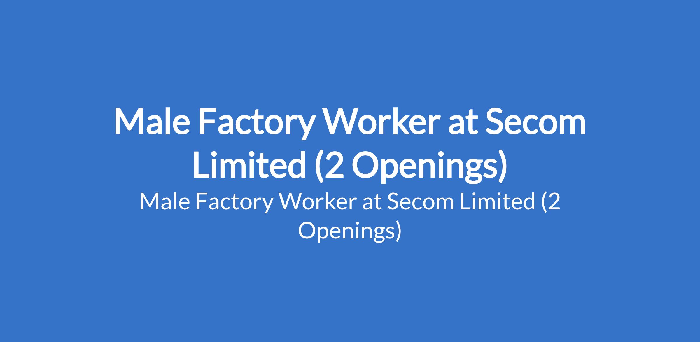 Secom Limited is recruiting to fill the position of: Male Factory Worker. The position is located in Isolo, Lagos State. Salary: N65,000 - N70,000 monthly. Interested candidates should be physically strong and fit, willing to work shifts (including nights), and must reside within Isolo or nearby.
