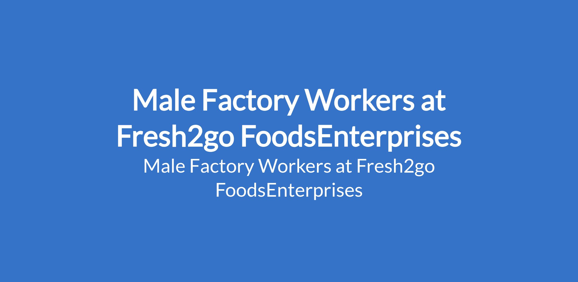 Fresh2go FoodsEnterprises is recruiting to fill the position of: Male Factory Worker. The position is located in Ibadan - Oluyole, Oyo State. Salary: N60,000 - N65,000 / month. Interested candidates should possess minimum of a High School Diploma or an SSCE qualification.