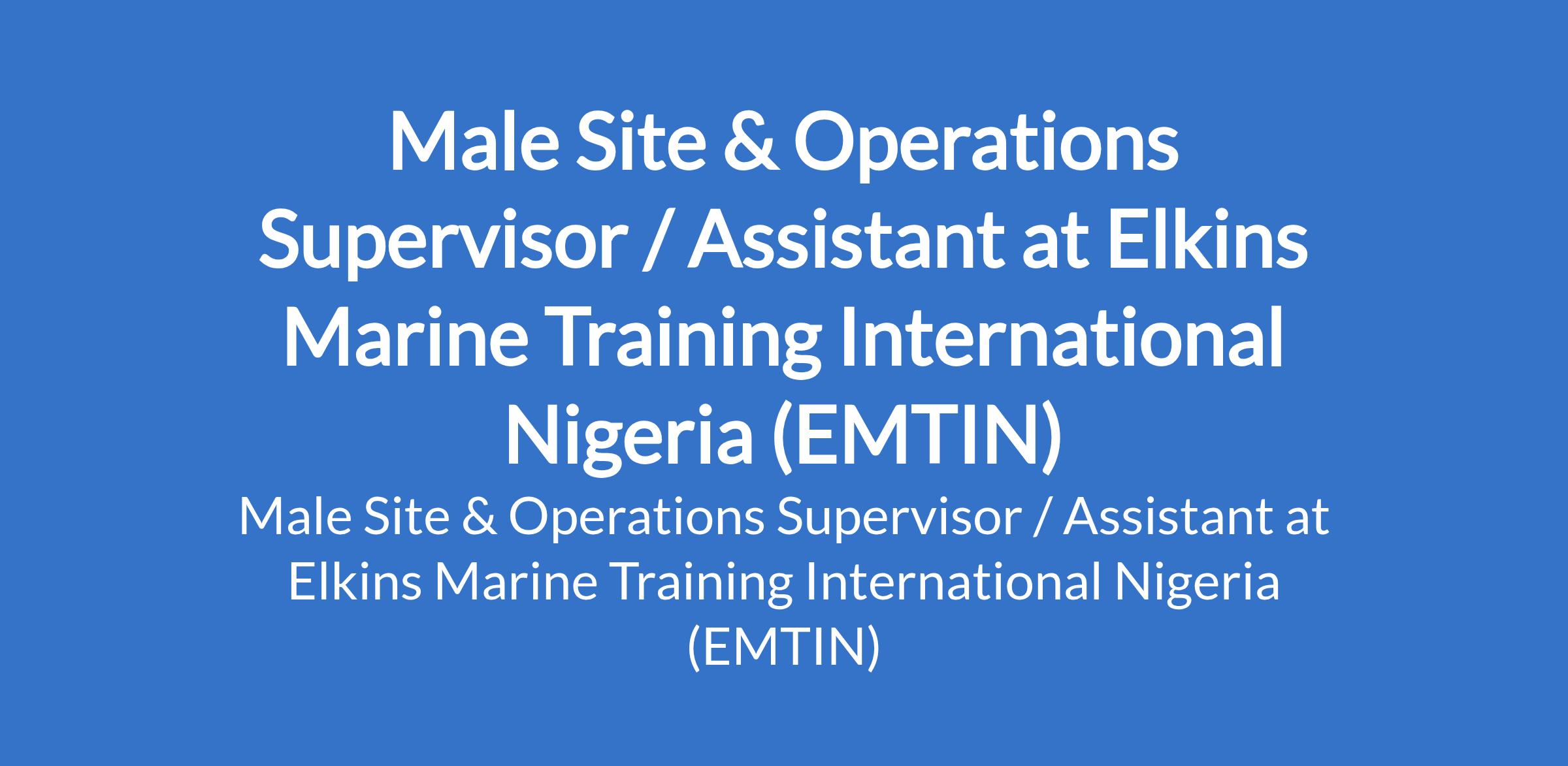 Elkins Marine Training International Nigeria (EMTIN) is recruiting to fill the position of: Male Site & Operations Supervisor / Assistant. The position is located in Port Harcourt road, Owerri - Imo State. Salary: N80,000 - N130,000 monthly. This position will suit someone who is very fit, has excellent time management, and is ready to demonstrate good ability in the workplace. Interested candidates should possess relevant qualifications, and must be ready to demonstrate a professional approach to work and tasks.