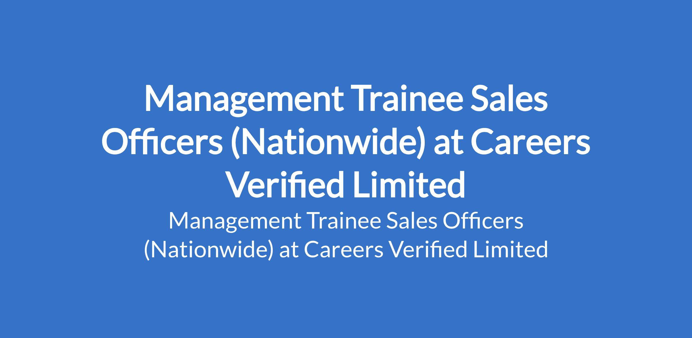 Careers Verified Limited is recruiting to fill the position of: Management Trainee Sales Officer. This position is required Nationwide. Salary: N90,000 - N94,000 monthly. Interested candidates should possess a Bachelor's Degree in Business Administration, Marketing, Economics, or related fields with at least 1 year work experience.