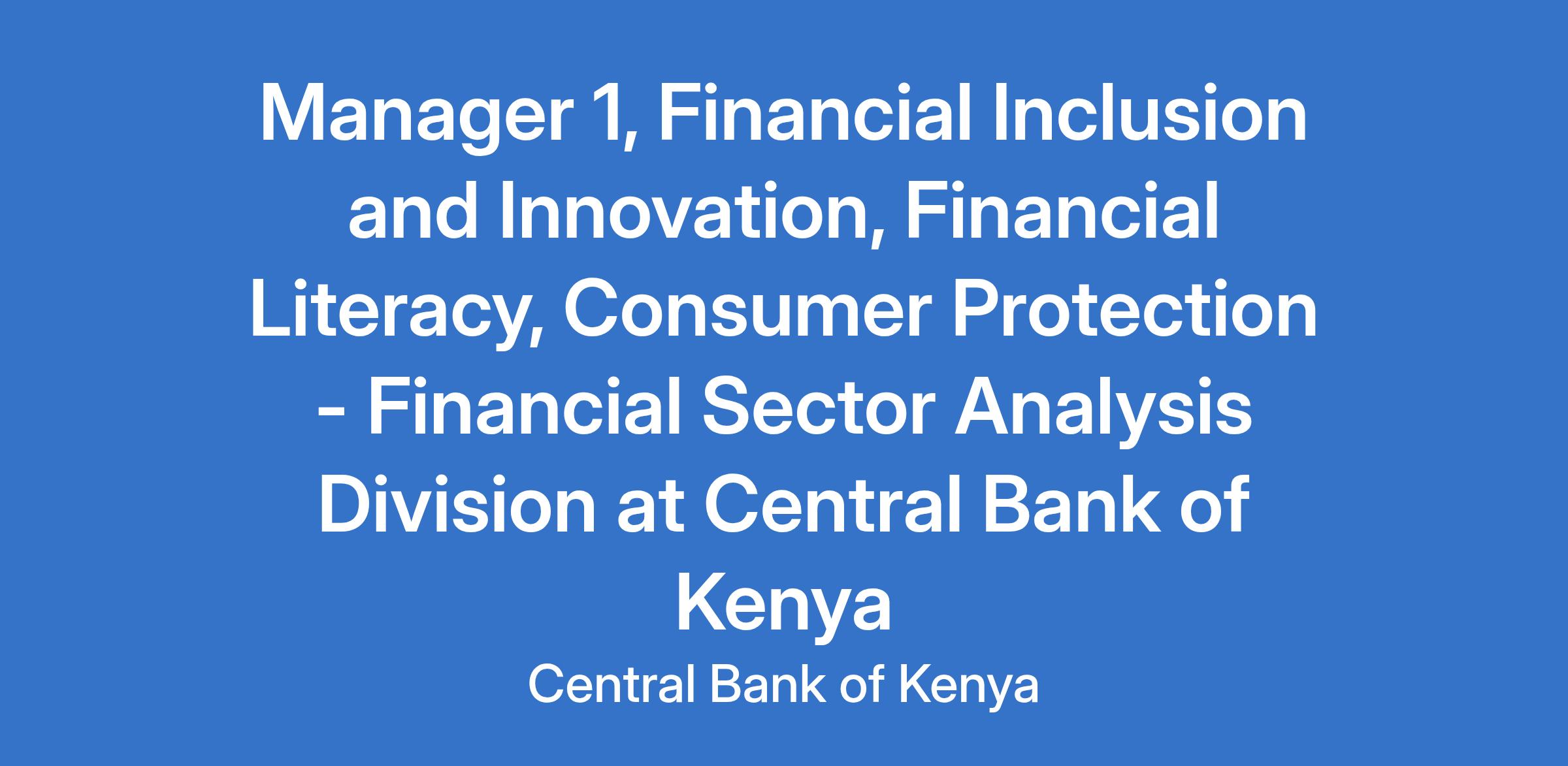 Manager 1, Financial Inclusion and Innovation, Financial Literacy, Consumer Protection - Financial Sector Analysis Division at Central Bank of Kenya