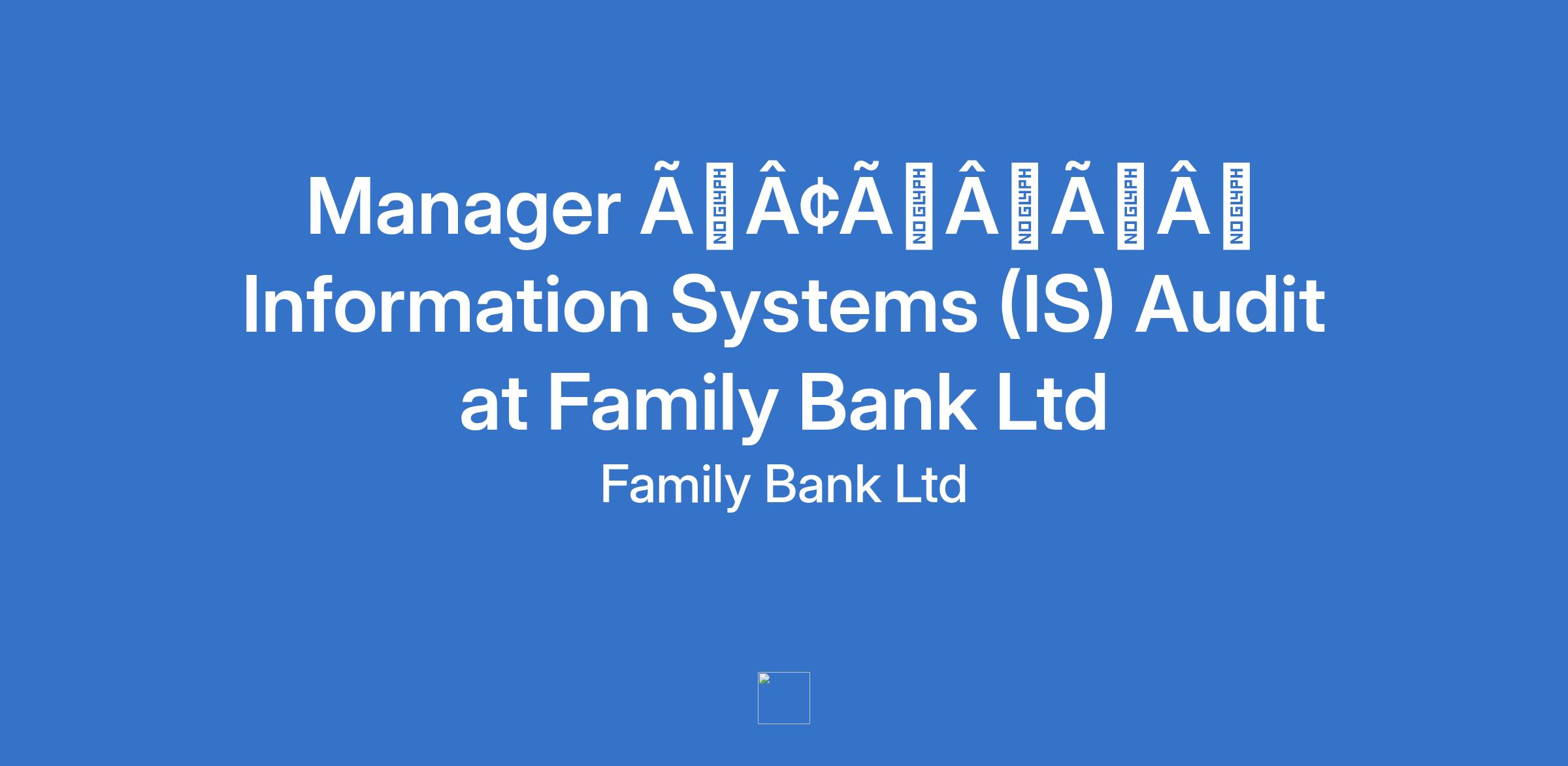 Manager âÃÂàInformation Systems (IS) Audit at Family Bank Ltd
