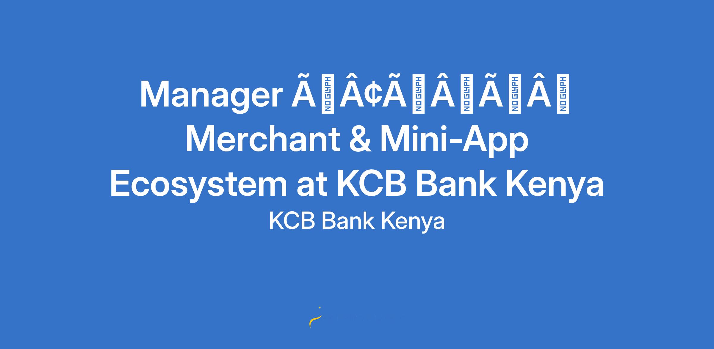 Manager âÃÂàMerchant & Mini-App Ecosystem at KCB Bank Kenya