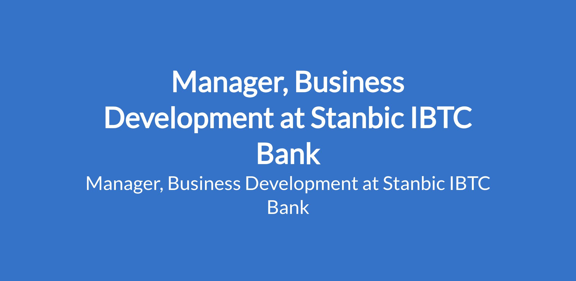 Stanbic IBTC Bank is recruiting to fill the position of: Manager, Business Development. The position is located in Walter Carrington Crescent, Lagos State. Interested candidates should possess minimum of a First Degree or its equivalent in General Social Sciences with a minimum of 5 years experience with exposure in sales relationship management & leadership position.