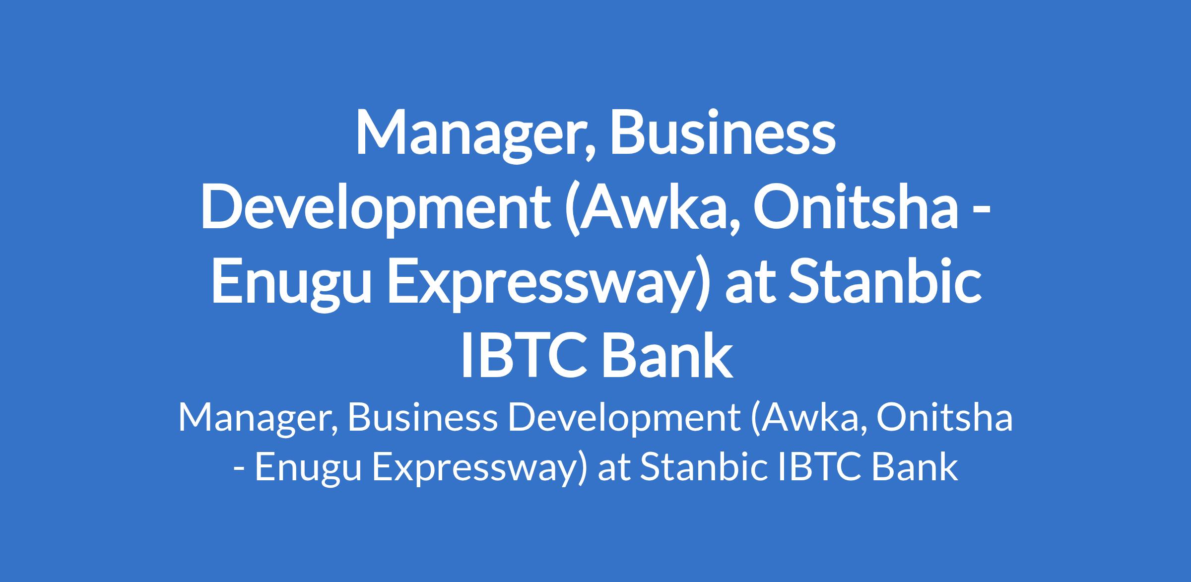 Stanbic IBTC Bank is recruiting to fill the position of: Manager, Business Development. The position is located in Awka, Onitsha - Enugu Expressway, Anambra State. Interested candidates should possess minimum of a First Degree or its equivalent in General Social Sciences with a minimum of 5 years experience with exposure in sales relationship management & leadership position.