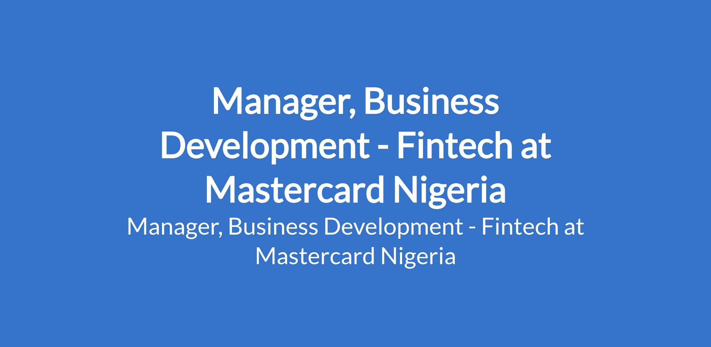 Manager, Business Development - Fintech at Mastercard Nigeria