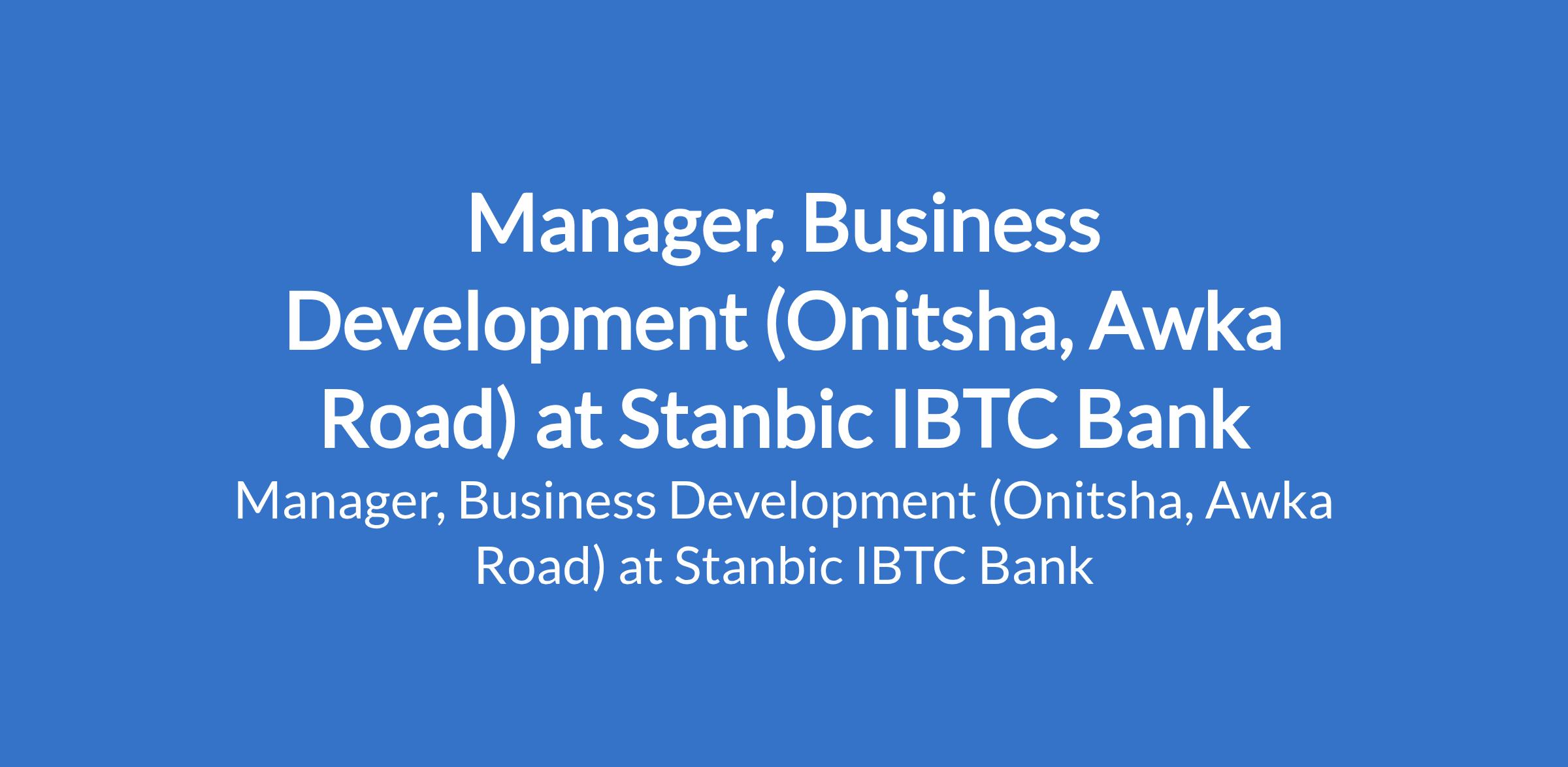 Stanbic IBTC Bank is recruiting to fill the position of: Manager, Business Development. The position is located in Onitsha, Awka Road, Anambra State. Interested candidates should possess minimum of a First Degree or its equivalent in General Social Sciences with a minimum of 5 years experience with exposure in sales relationship management & leadership position.