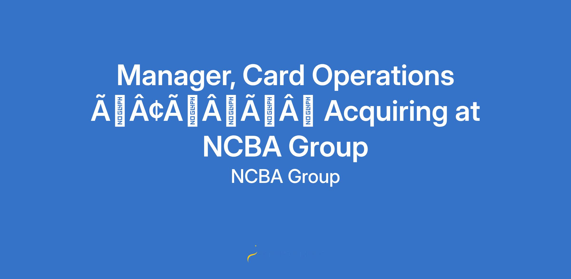 Manager, Card Operations âÃÂàAcquiring at NCBA Group