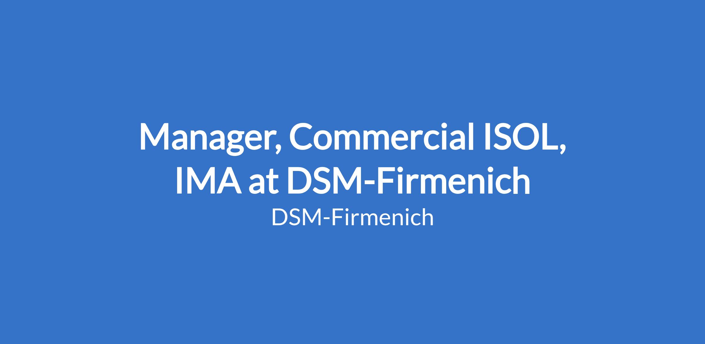 The position holder will support the commercial management of all ingredient solutions product portfolios of ISOL within the agreed IMA TTH sales/marketing strategy and budget, reporting to the Senior Manager, Commercial, ISOL TTH, IMA.