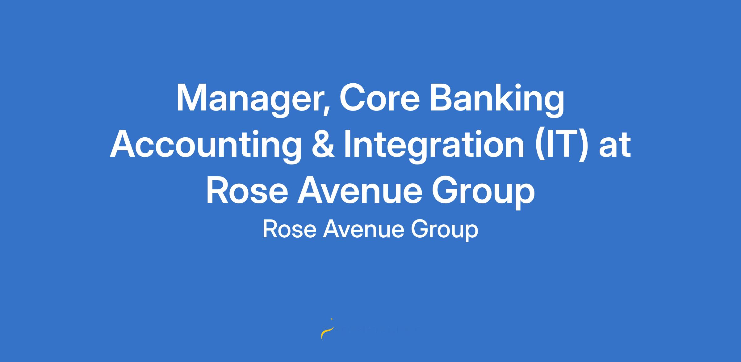 Manager, Core Banking Accounting & Integration (IT) at Rose Avenue Group