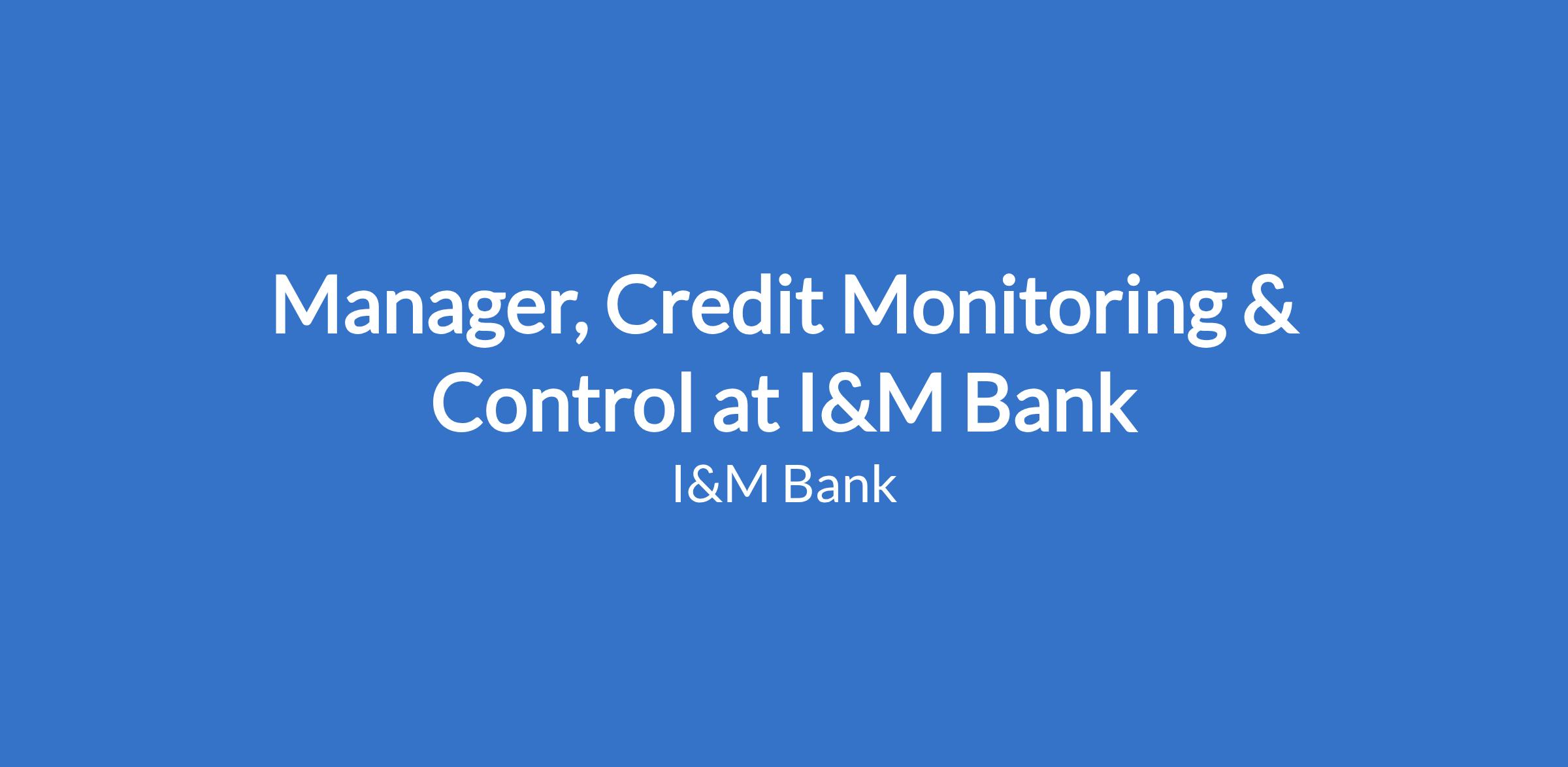 Manager, Credit Monitoring & Control at I&M Bank