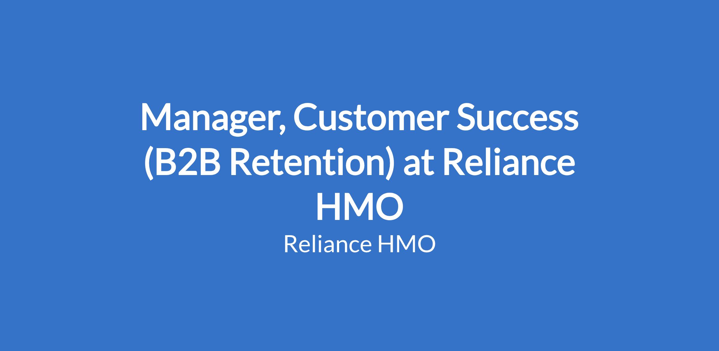 Manager, Customer Success (B2B Retention) at Reliance HMO