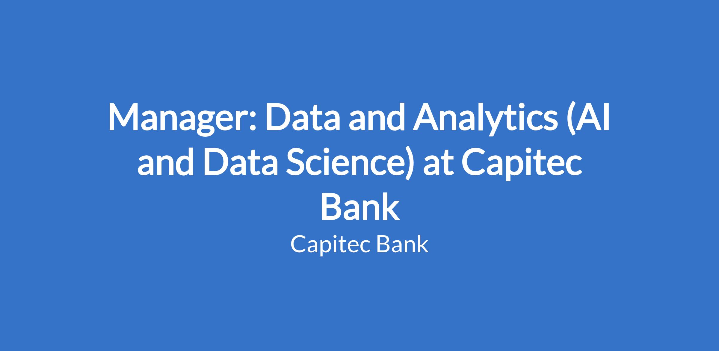 Manager: Data and Analytics (AI and Data Science) at Capitec Bank