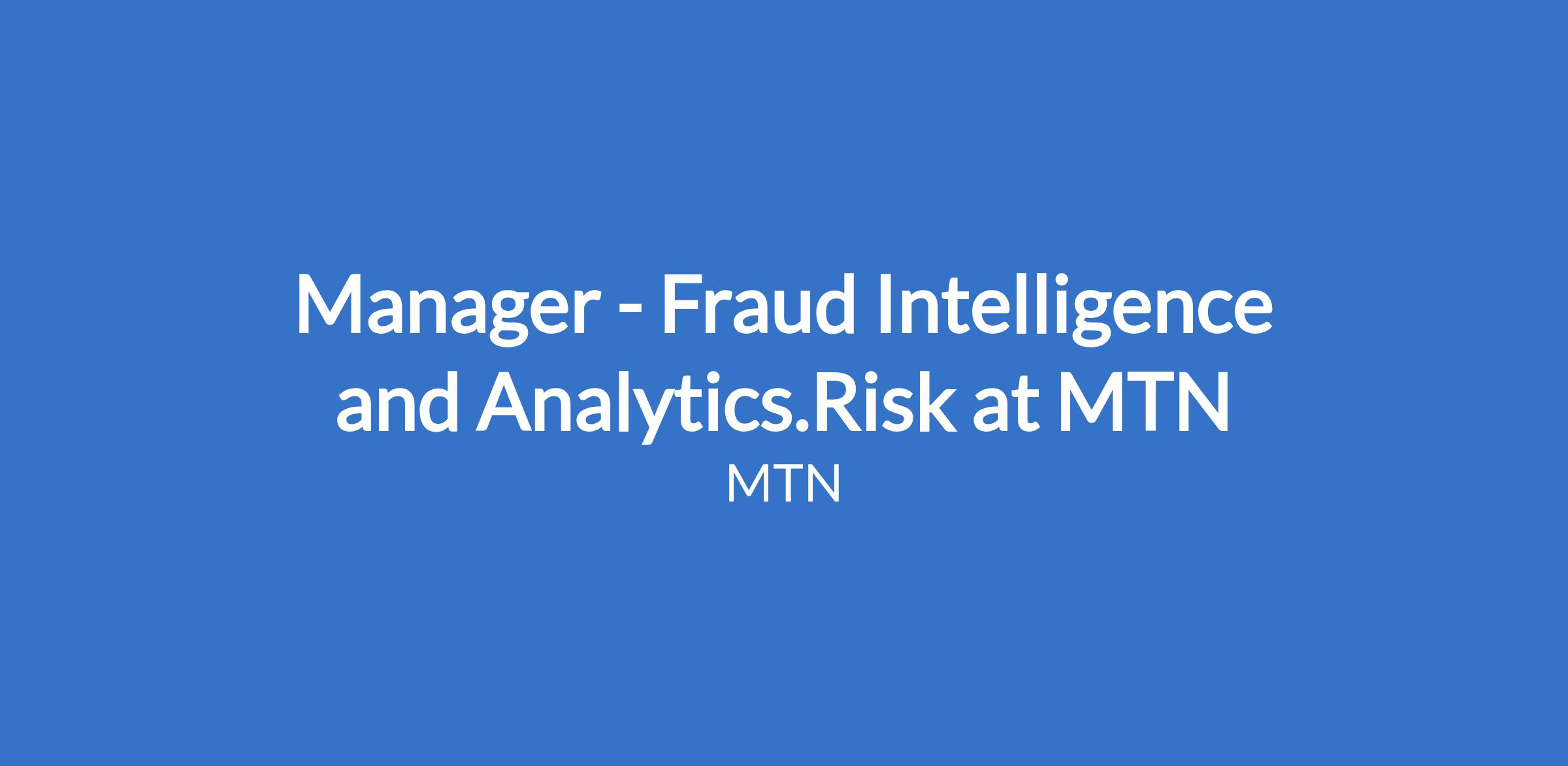 Manager - Fraud Intelligence and Analytics.Risk at MTN