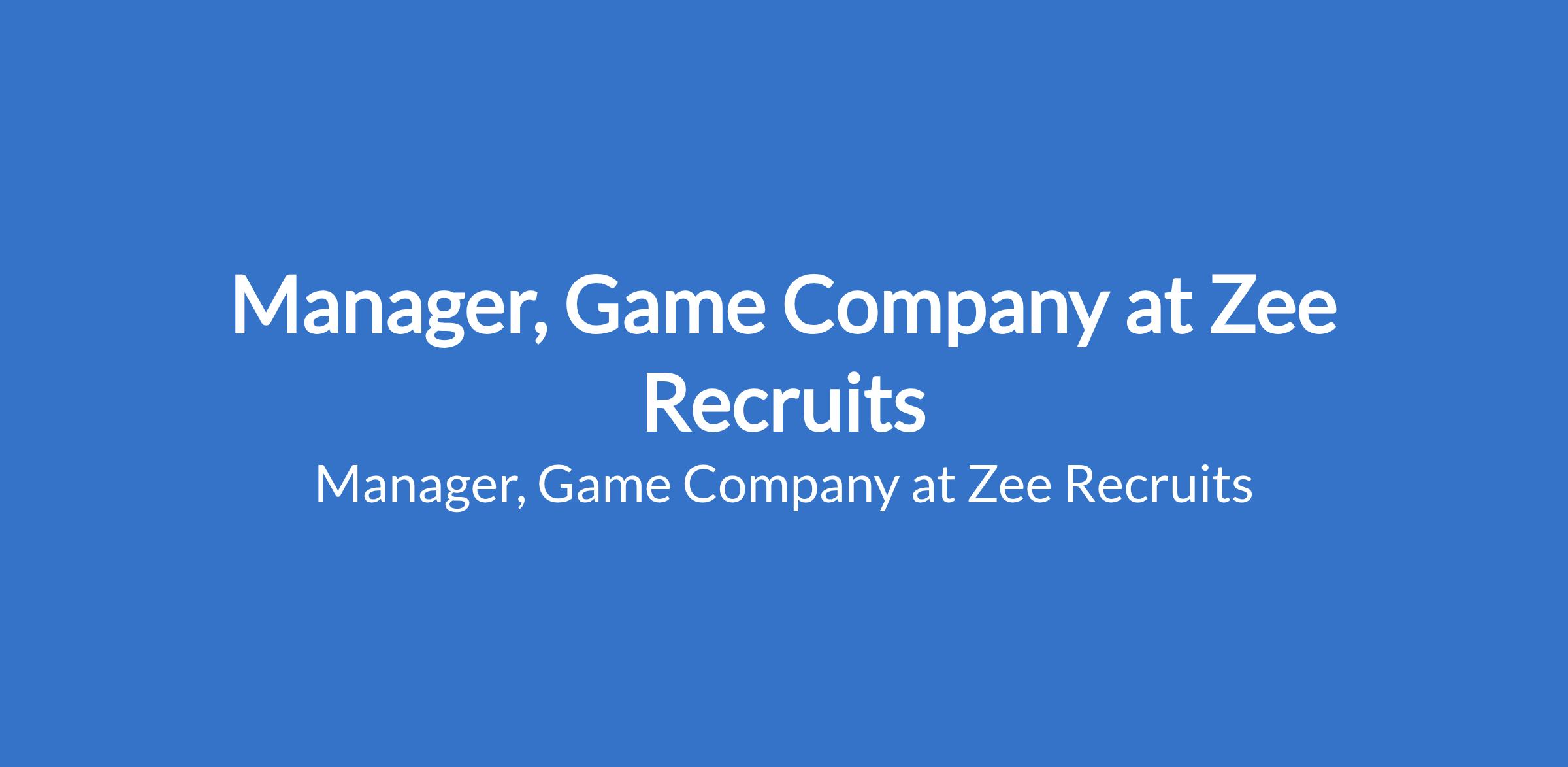 Manager, Game Company at Zee Recruits