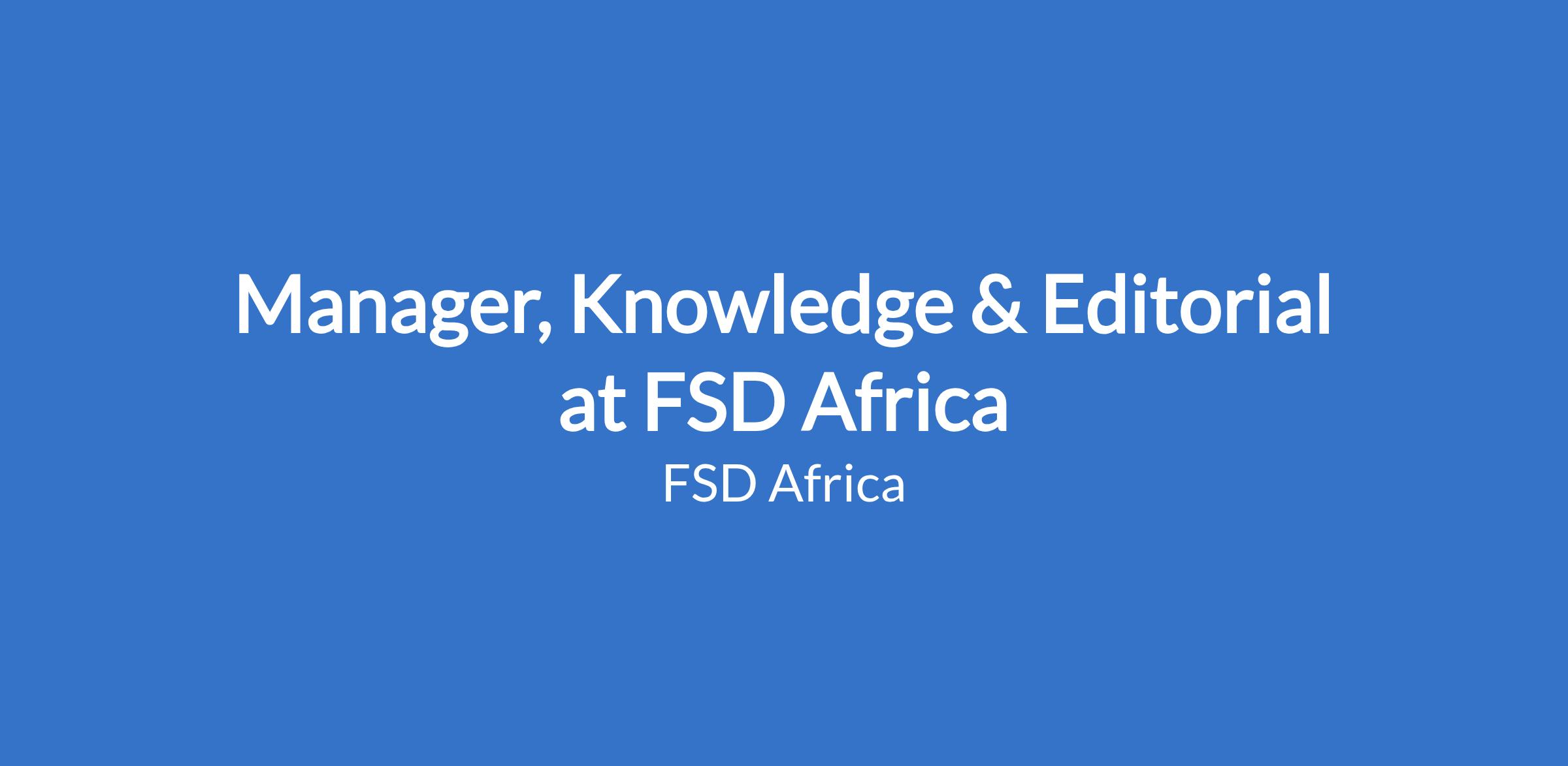 Manager, Knowledge & Editorial at FSD Africa