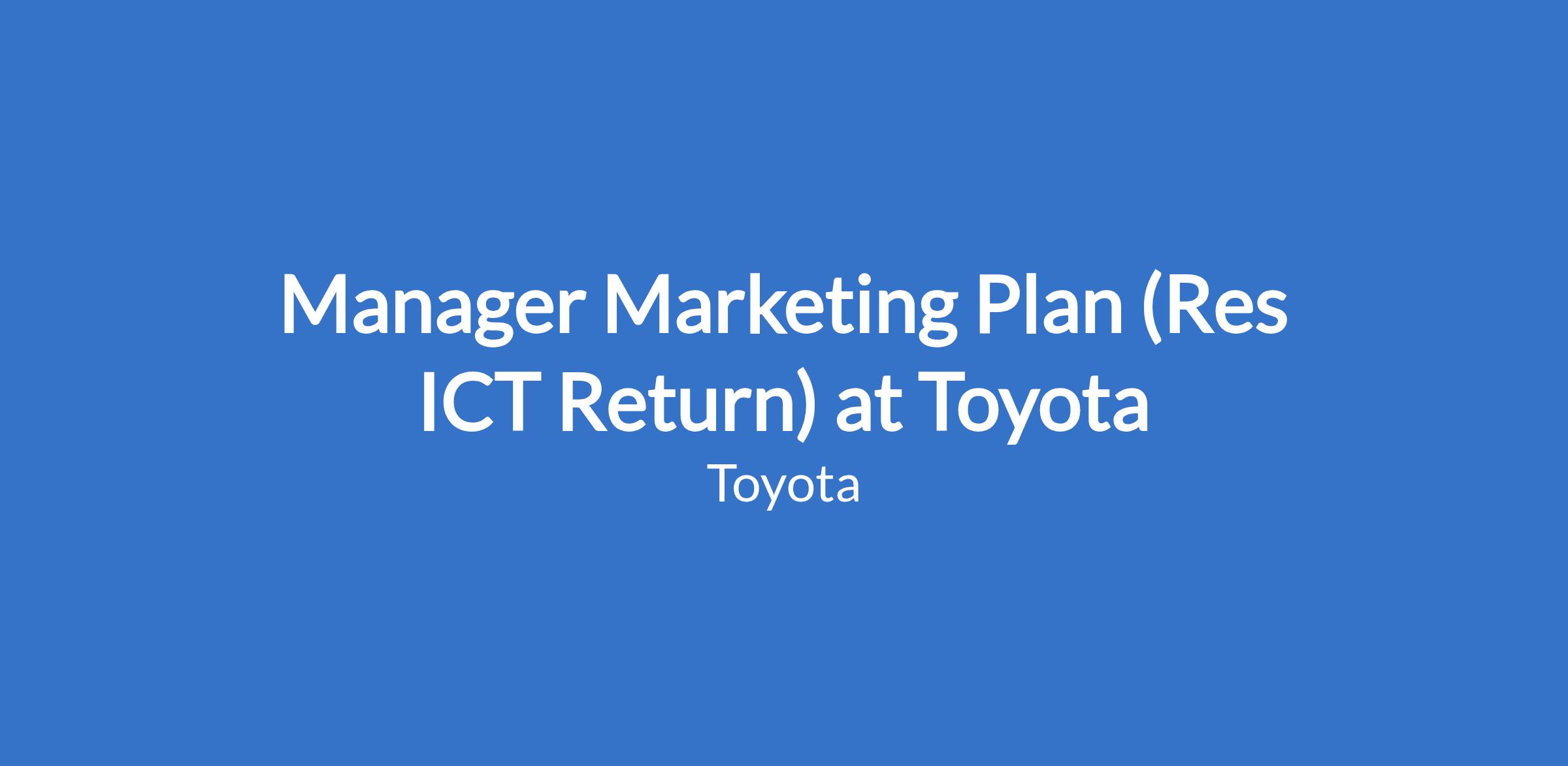 Manager Marketing Plan (Res ICT Return) at Toyota