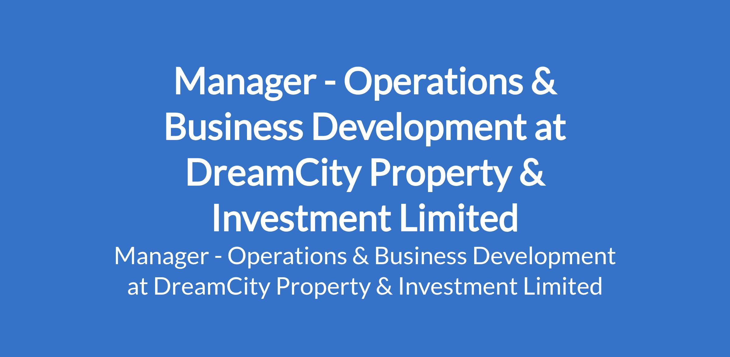 DreamCity Property & Investment Limited is recruiting to fill the position of: Manager - Operations & Business Development. The position is located in Lagos State. Interested candidates should possess a Masters Degree (MBA or MSc) in Business Administration, Finance, Real Estate, or a related field from a recognized institution with a minimum of 7 years of progressive, verifiable experience in operations, business development, and sales within the real estate properties and investment industry.