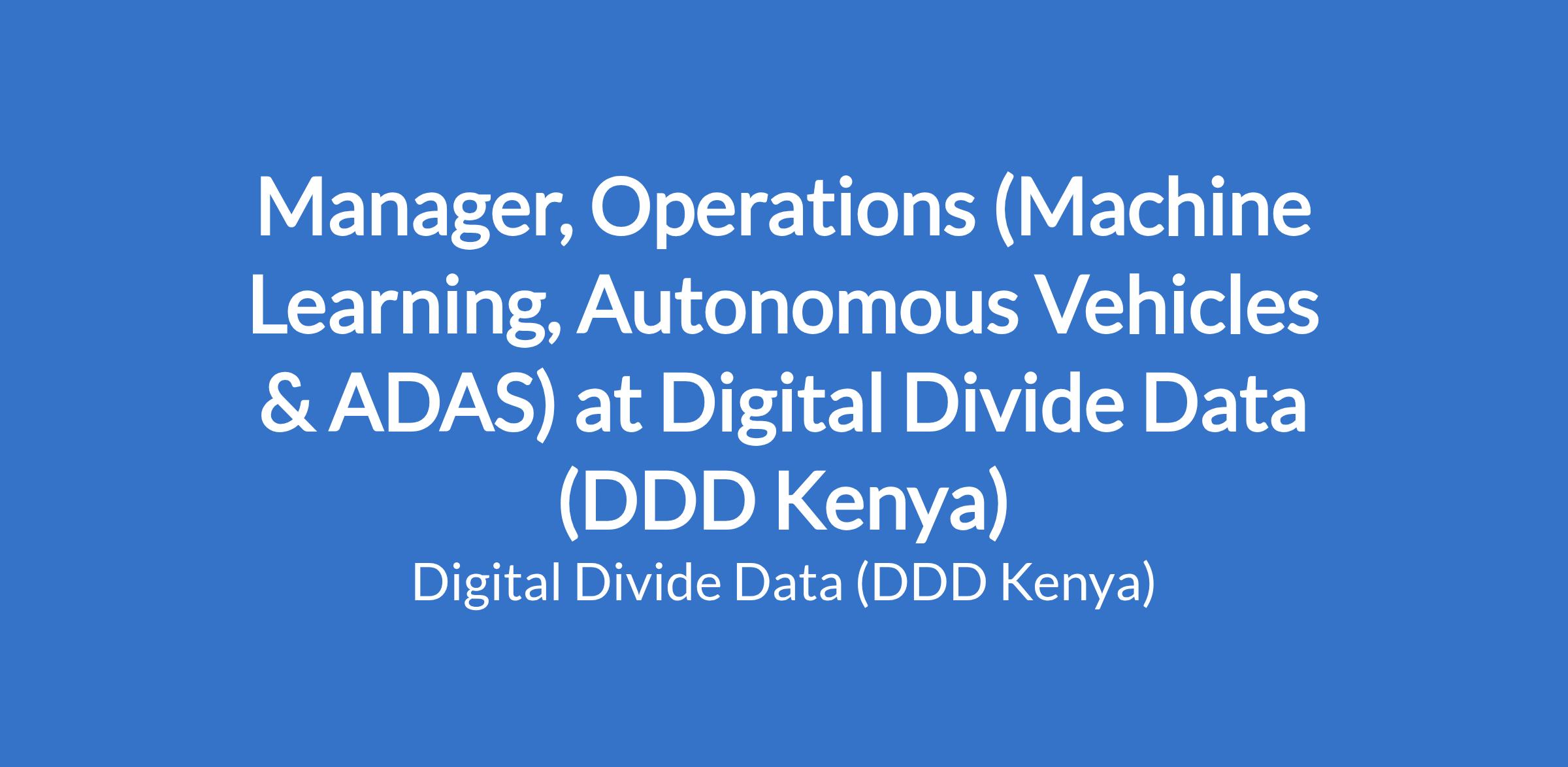 Digital Divide Data (DDD) is a global leader in powering Machine Learning and Autonomous Systems with high-quality, large-scale data. We are seeking an Operations Manager (ML, AV & ADAS) who will own delivery excellence, elevate operational performance, and drive client success across cutting-edge AI programs.