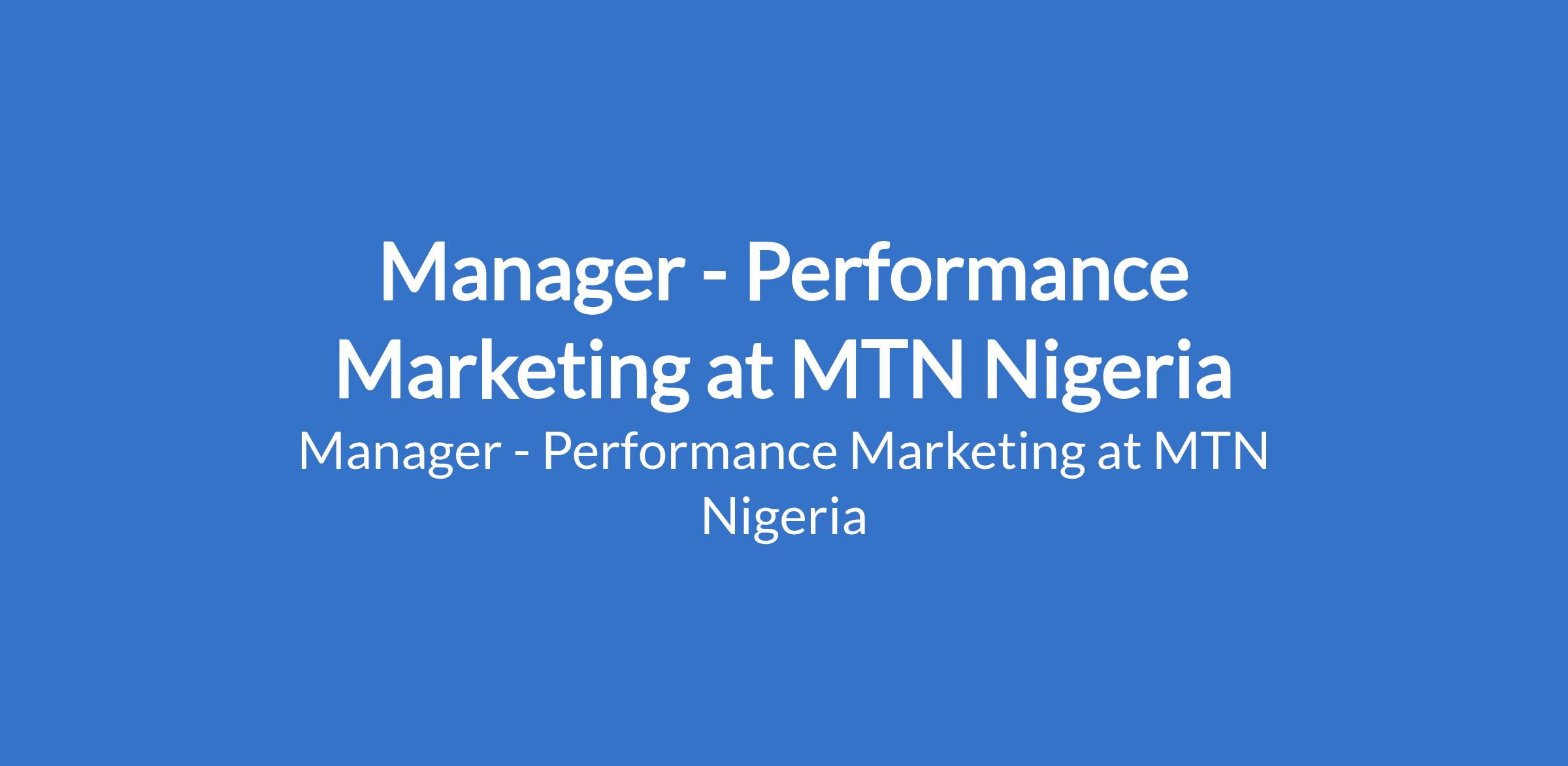 MTN Nigeria is recruiting to fill the position of: Manager - Performance Marketing. Interested candidates should possess a first Degree in Business-related or any Social Science discipline with 6 - 13 years experience.