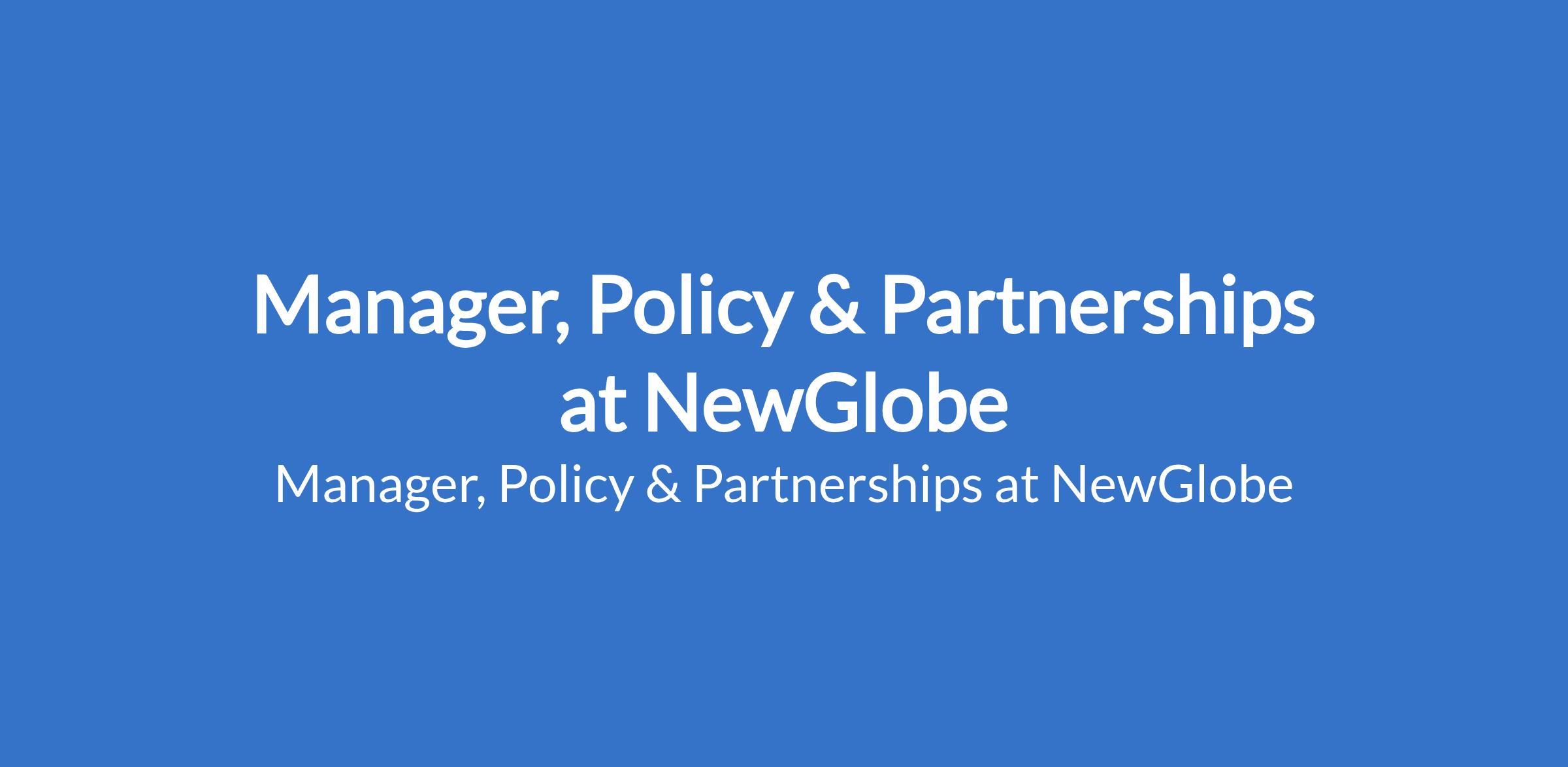 NewGlobe is recruiting to fill the position of: Manager, Policy & Partnerships. The position is located in Dutse, Jigawa State. Interested candidates should possess a Bachelor's Degree, superior academic performance with over 4 years experience in government program delivery or working in account management or as an engagement manager.
