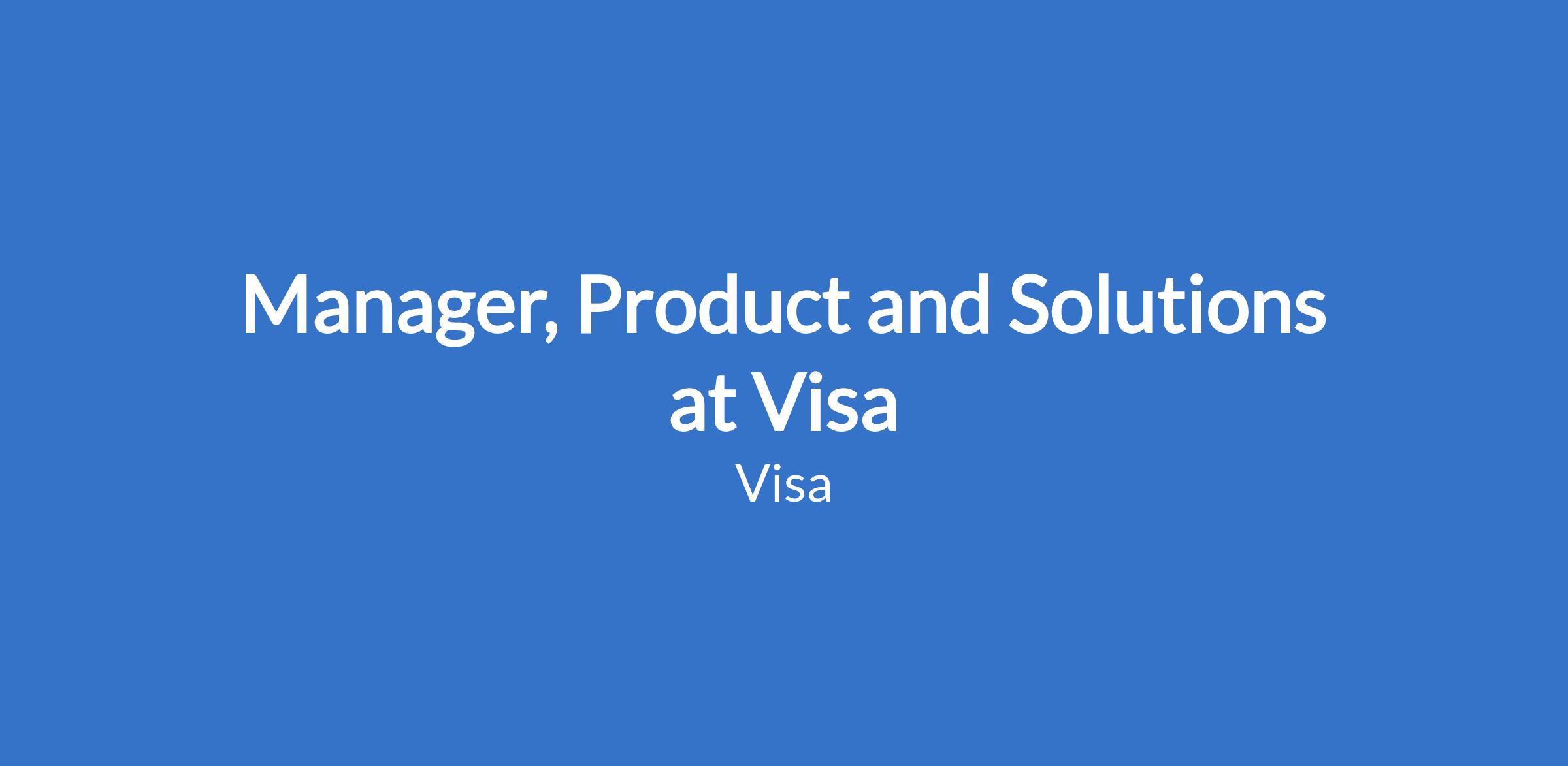 Manager, Product and Solutions at Visa