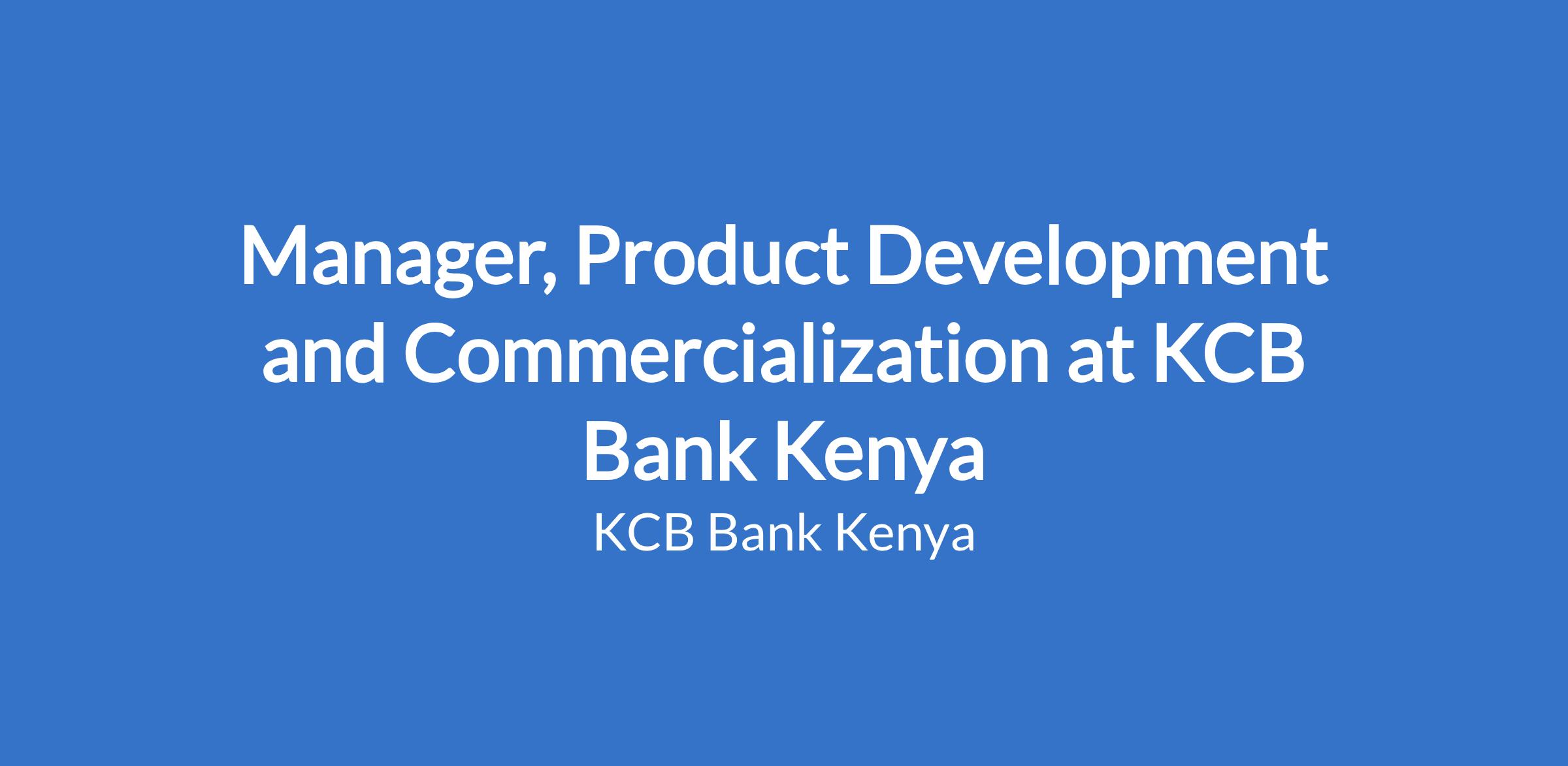 Manager, Product Development and Commercialization at KCB Bank Kenya