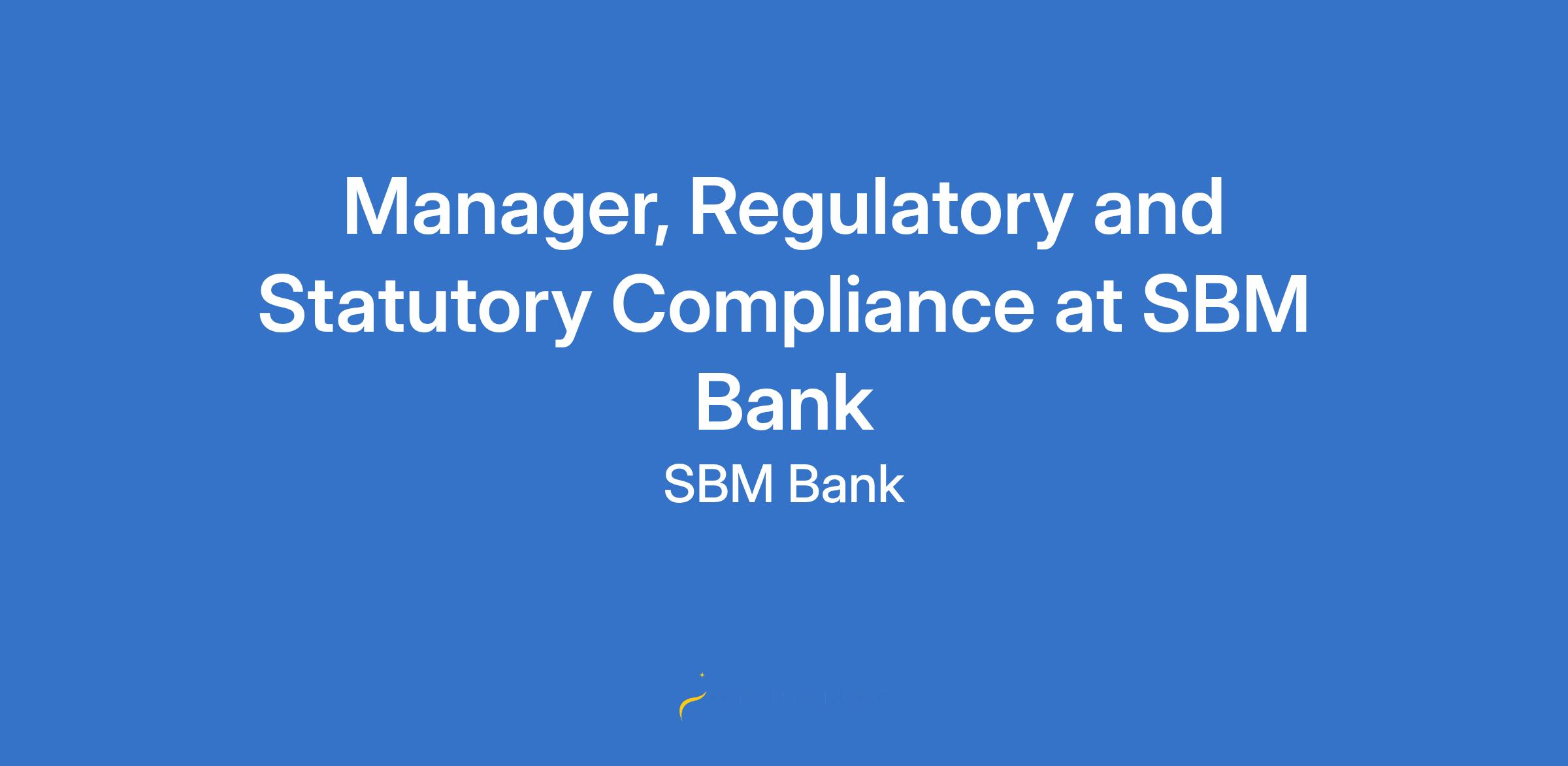 Manager, Regulatory and Statutory Compliance at SBM Bank