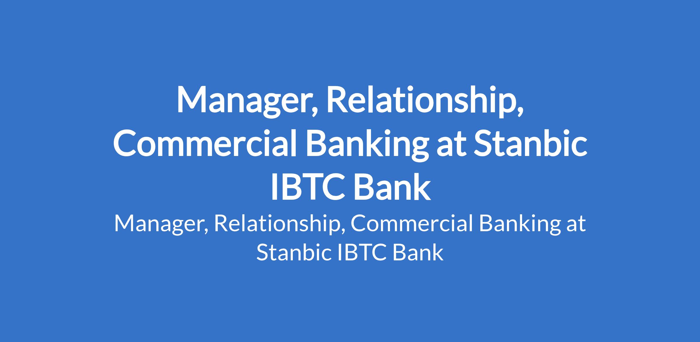 Stanbic IBTC Bank is recruiting to fill the position of: Manager, Relationship, Commercial Banking. The position is located in Maiduguri, Borno State. Interested candidates should possess a First Degree in any field with at least 7-10 years of Relationship management experience in a commercial Bank.