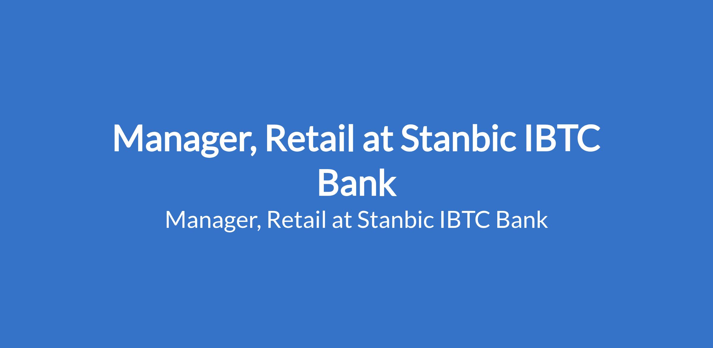 Stanbic IBTC Bank is recruiting to fill the position of: Manager, Retail. The position is located in Walter Carrington Crescent, Lagos State. Interested candidates should possess a minimum of a B.Sc in any discipline with 6-10 years' experience in the insurance industry.