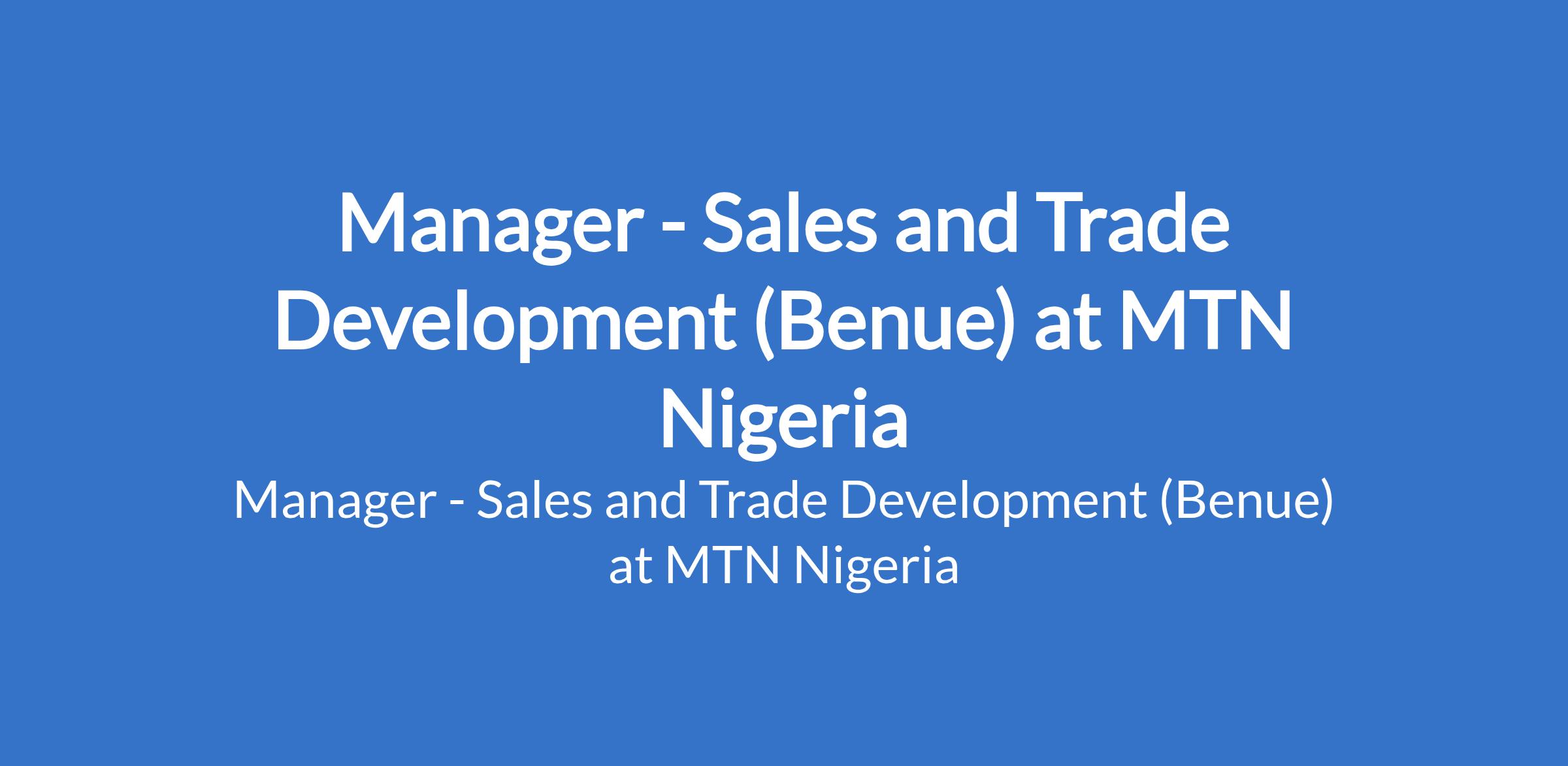 Manager - Sales and Trade Development (Benue) at MTN Nigeria