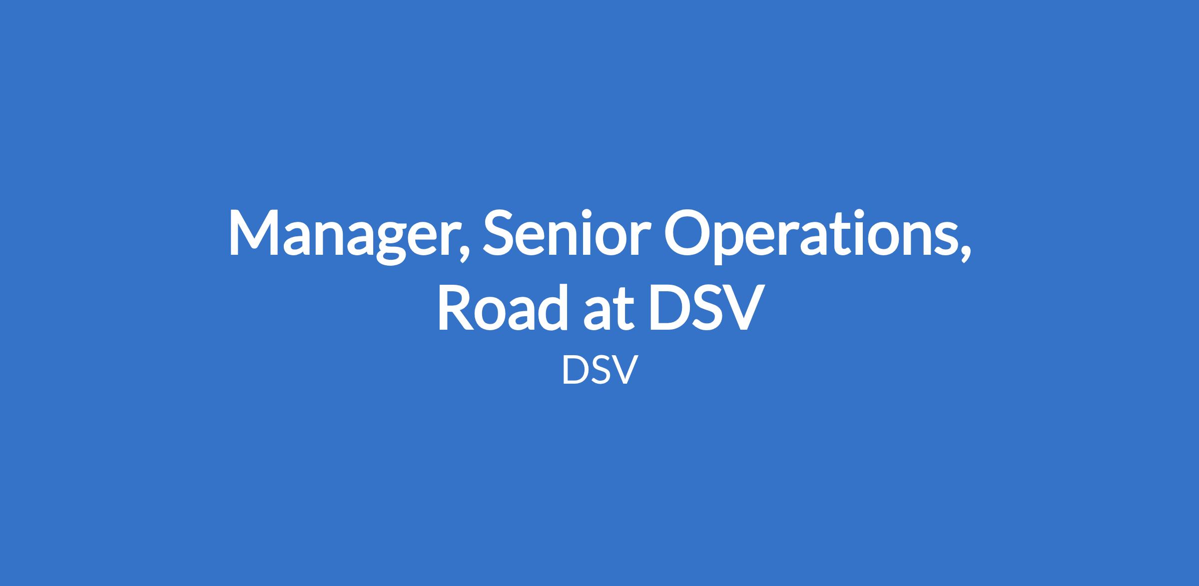Manager, Senior Operations, Road at DSV