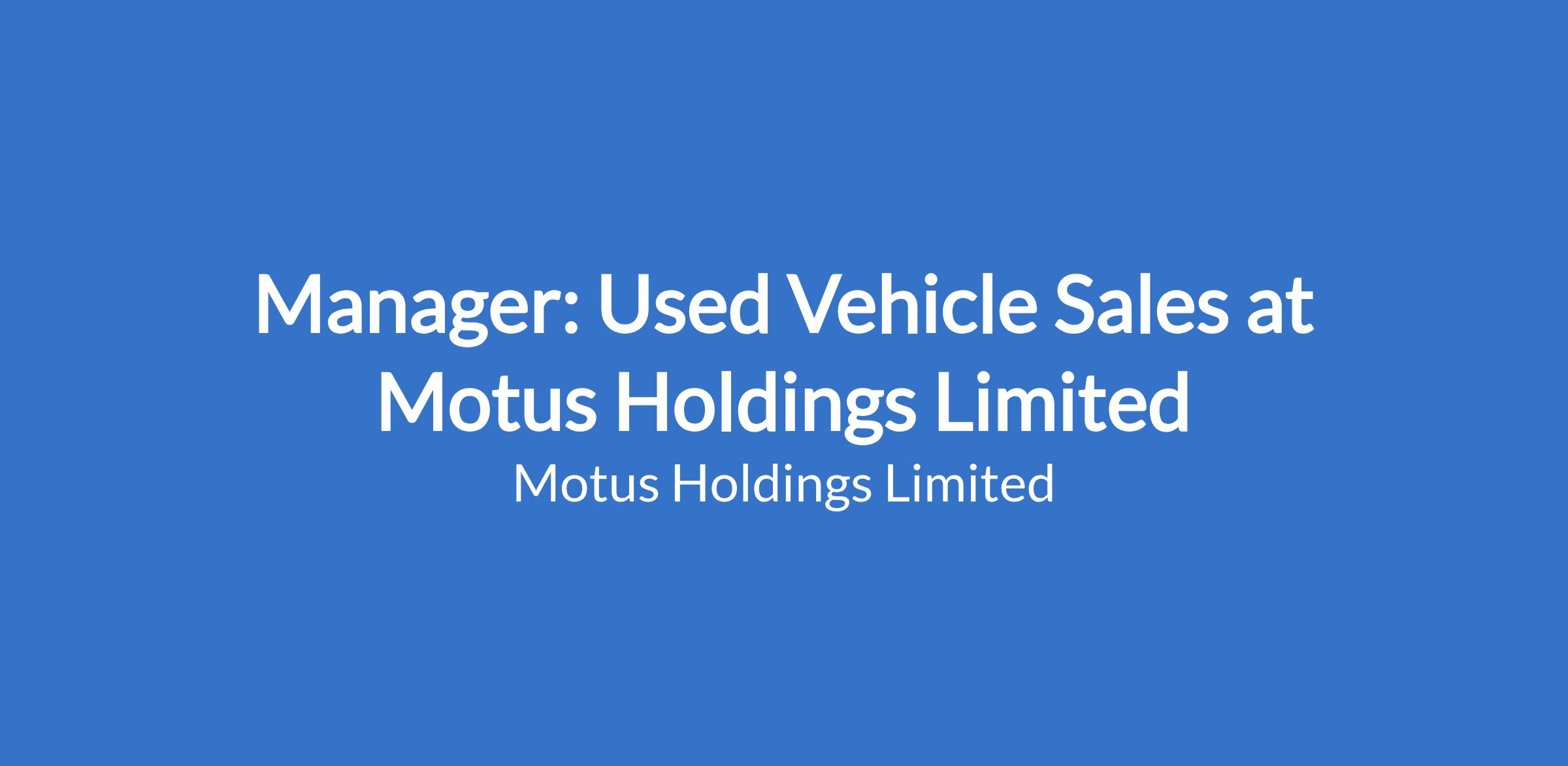 The Manager, Used Vehicle Department will also be responsible for developing and implementing strategies to increase sales and profitability within the department.