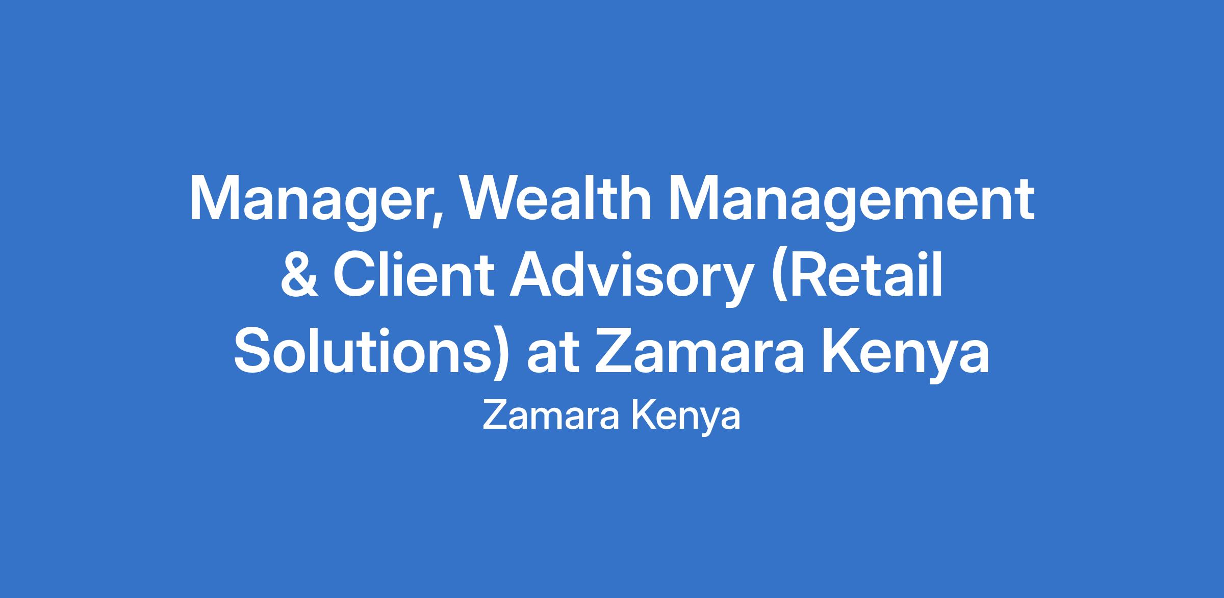 Manager, Wealth Management & Client Advisory (Retail Solutions) at Zamara Kenya