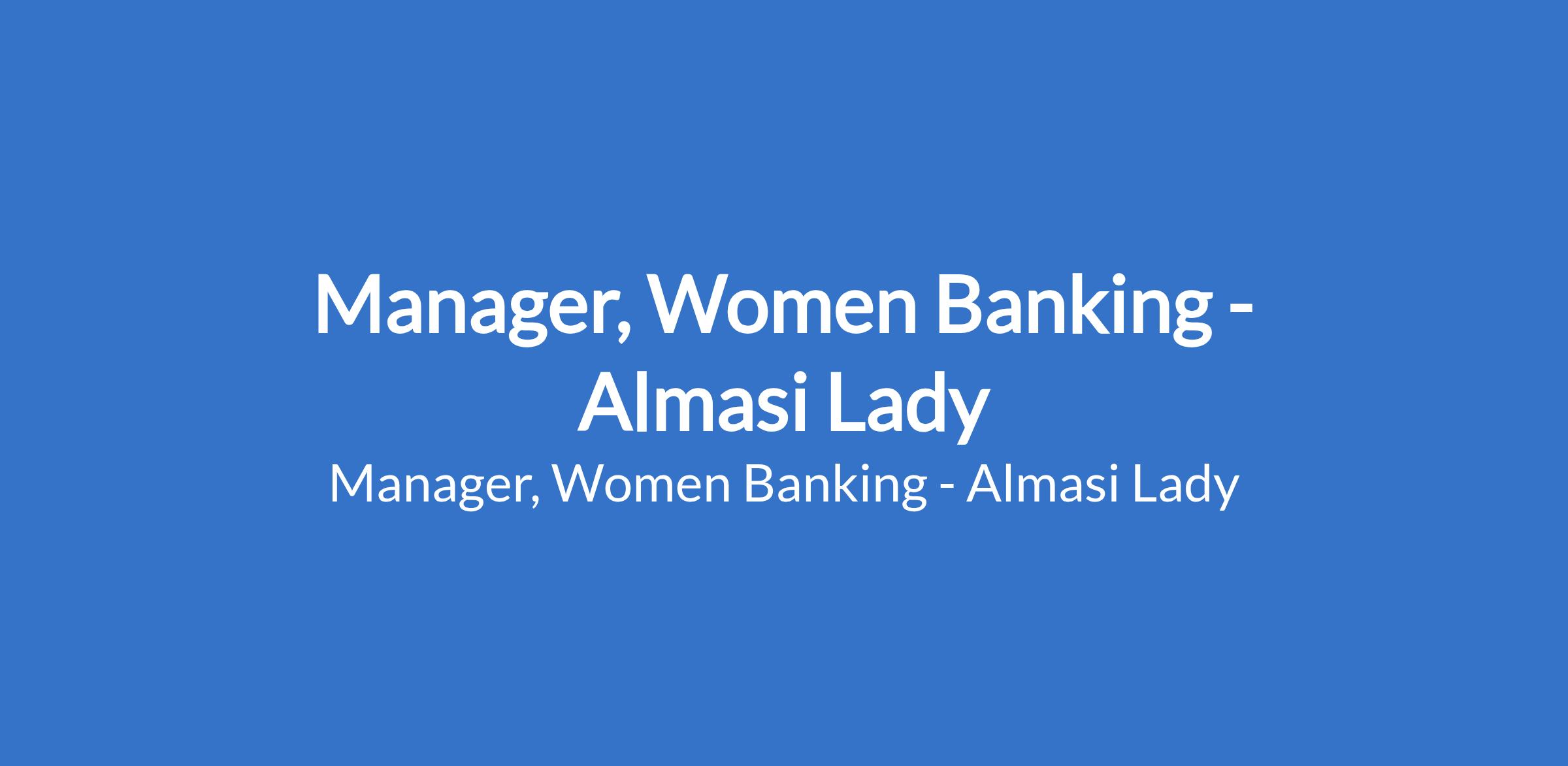 Manager, Women Banking - Almasi Lady