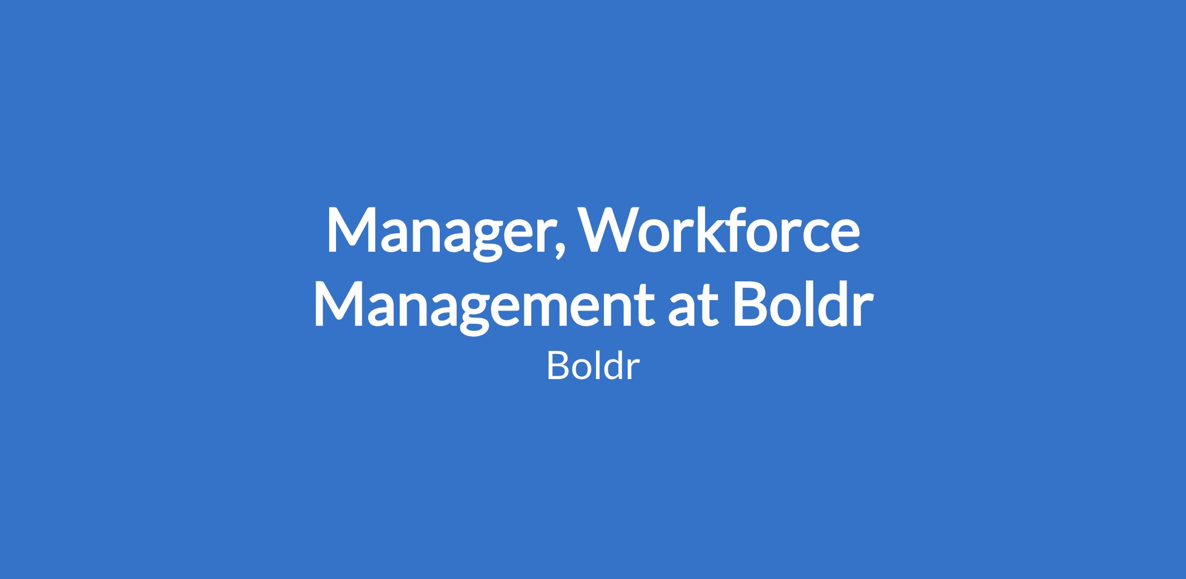Manager, Workforce Management at Boldr