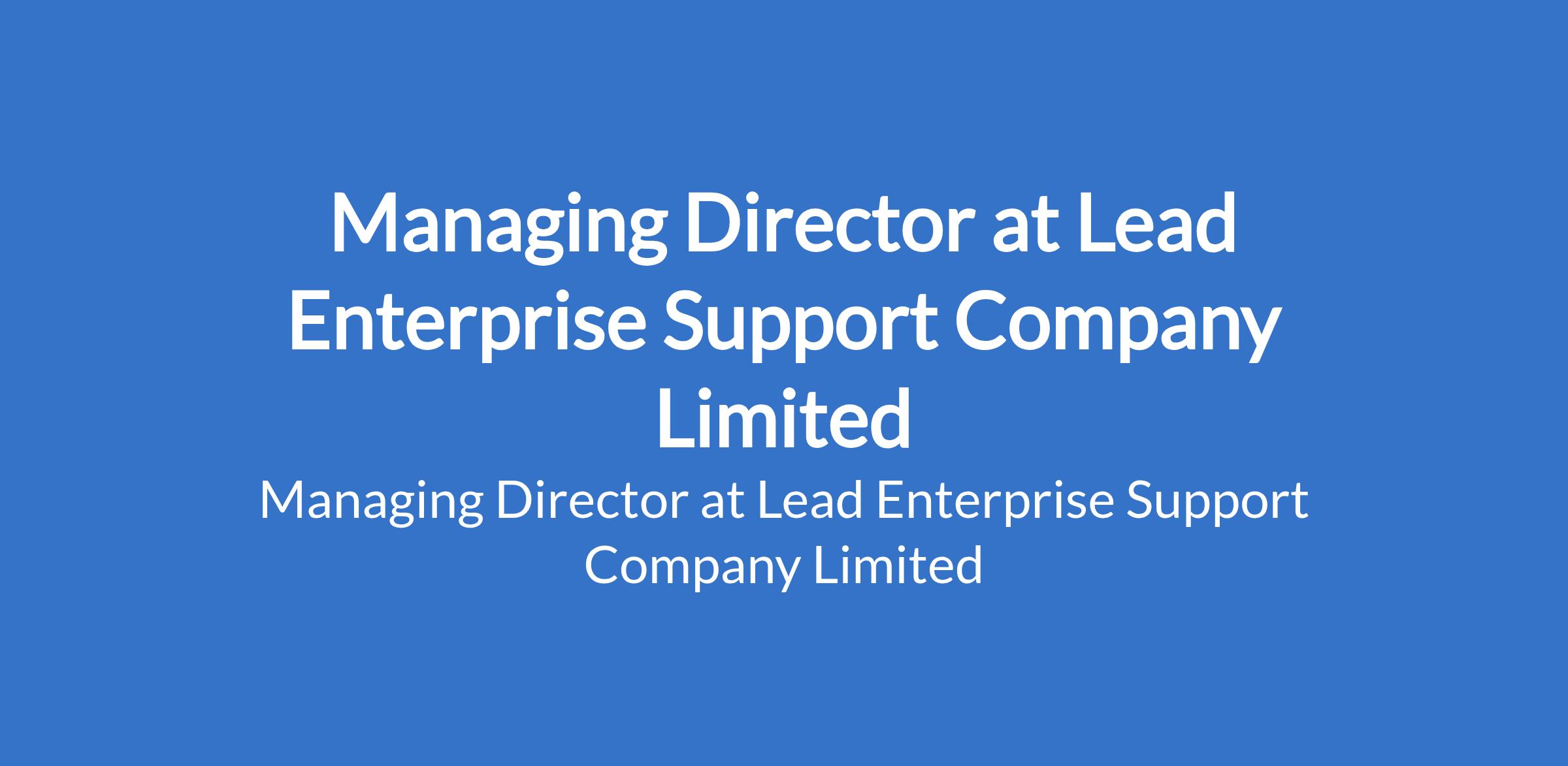Lead Enterprise Support Company Limited is recruiting to fill the position of: Managing Director. The position is located in Alausa-Ikeja, Lagos State. Interested candidates should possess minimum of a Masters Degree with proven experience in Group or portfolio management, at least at middle management level.