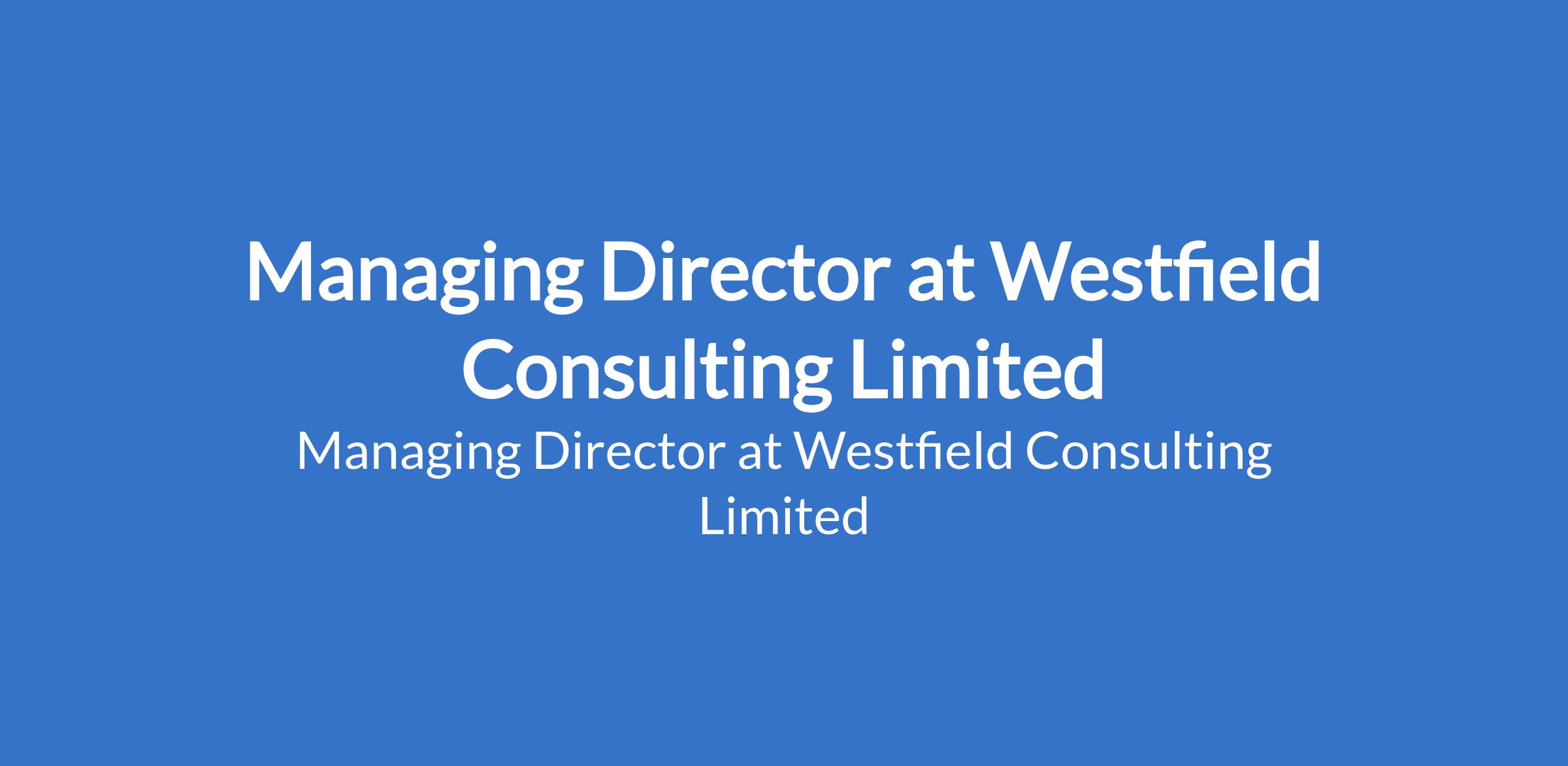 Westfield Consulting Limited Westfield Consulting Limited - Our client, a Real Estate, Energy, Agriculture, Minning, Maritime and Aviation Company is recruiting to fill the position of: Managing Director. The position is located in Lapai, Niger State. Interested candidates should possess a good First Degree and also have a Masters Degree with 15 years of proven years of experience in the mining industry.