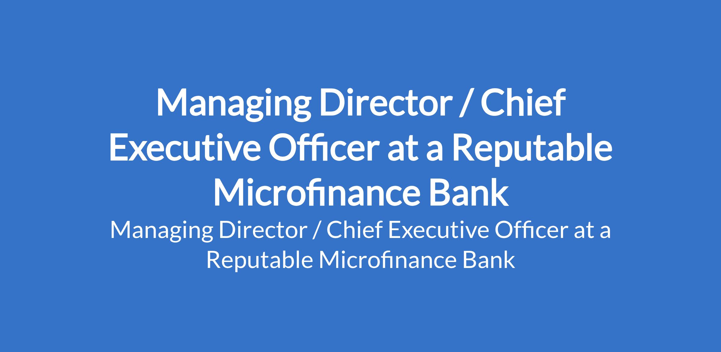 A reputable Microfinance Bank is recruiting to fill the position of: Managing Director / Chief Executive Officer. The position is located in Kwara State. Interested candidates should possess a minimum of a Bachelor's Degree or equivalent in Accounting, Banking & Finance, Business Administration or Economics with 8-10 years post qualification experience with at least 5 years at senior management level in a Microfinance Bank or other Financial Institutions.