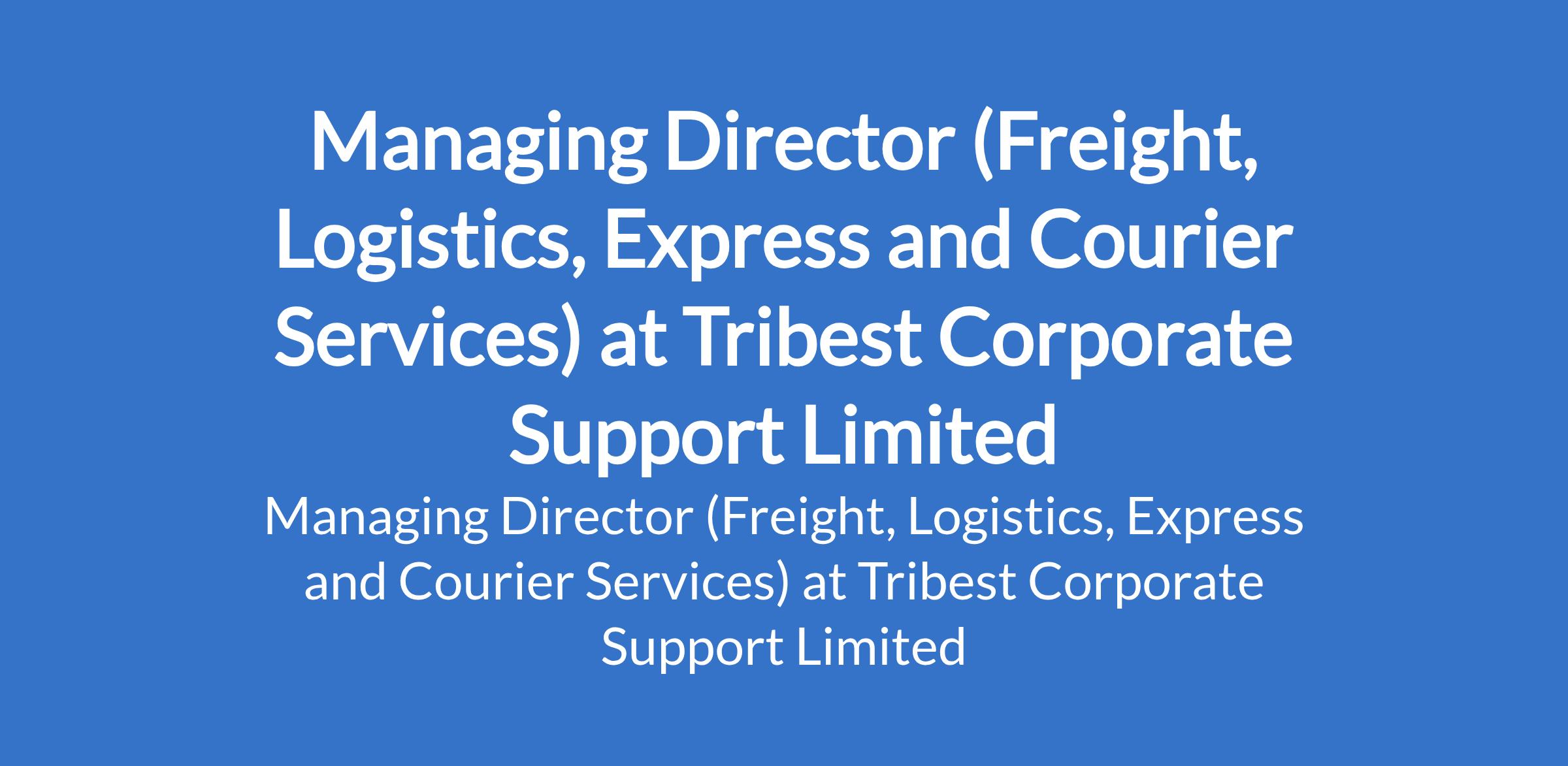 Tribest Corporate Support Limited is recruiting to fill the position of: Managing Director (Freight, Logistics, Express and Courier Services). The position is located in Ikeja Lagos, State. Interested candidates should possess a Bachelors Degree in Supply Chain Management, Business Administration, or Engineering with 1215 years in the logistics or supply chain industry, with at least 5 years in a senior executive role (GM or MD level).