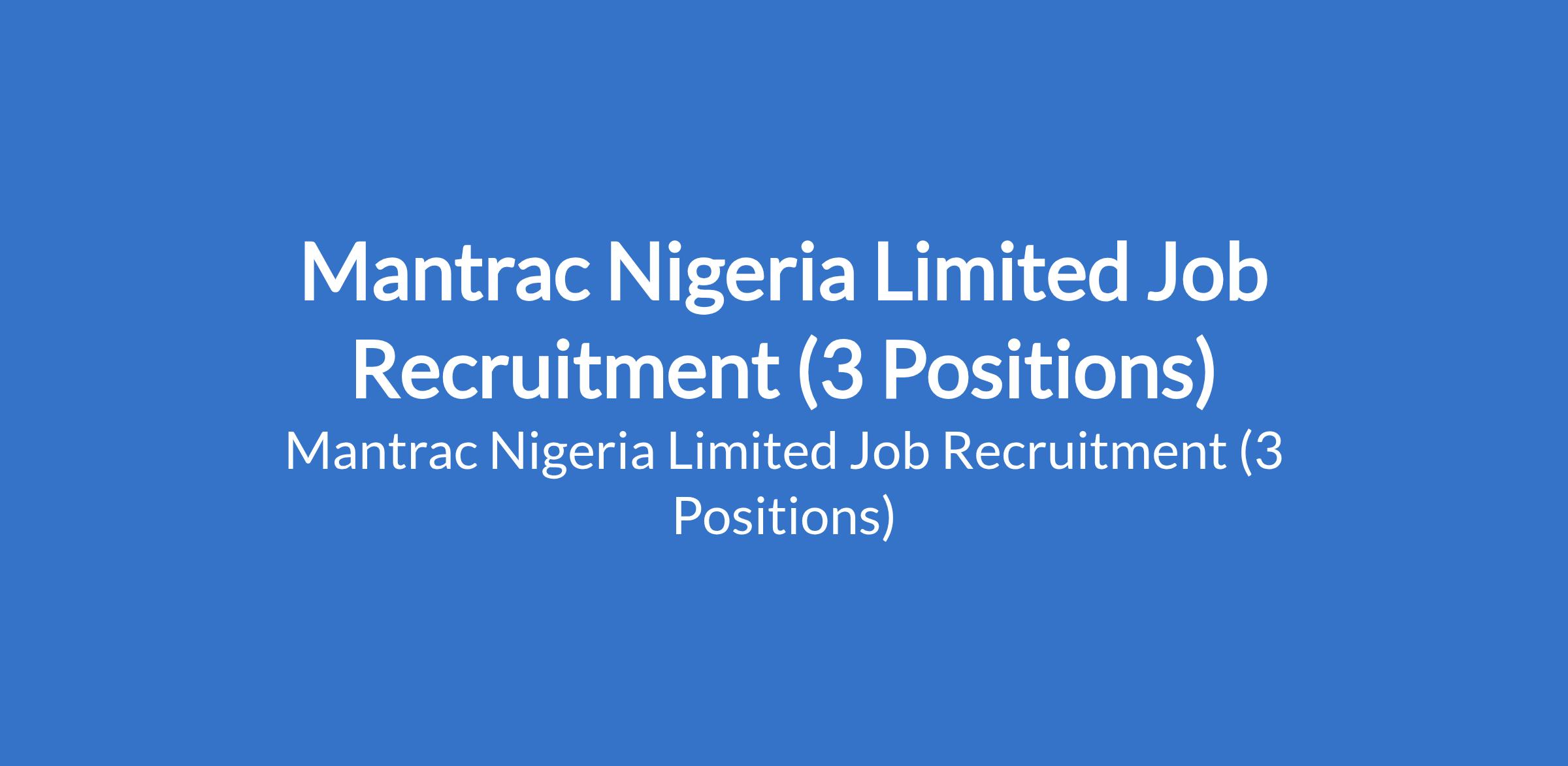 Mantrac Nigeria Limited Job Recruitment (3 Positions)