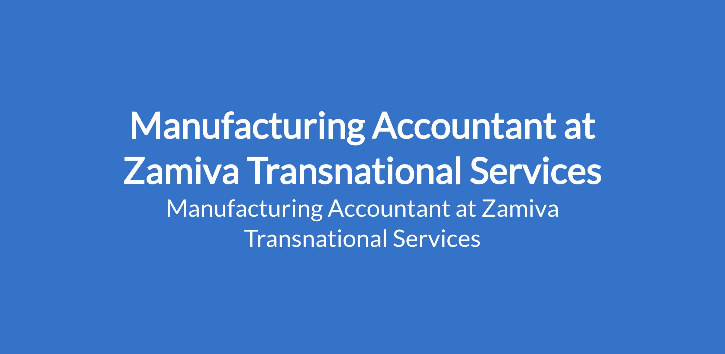 Zamiva Transnational Services is recruiting to fill the position of: Manufacturing Accountant. The position is located in Mowe, Ogun State. Salary: N600,000 - N700,000 per monthly Interested candidates should possess a Bachelors Degree in Accounting, Finance, or a related field, Professional qualification ICAN, ACCA is an added advantage with 5 - 6 years accounting experience, with at least 3 years in a senior role, preferably in an FMCG / manufacturing space.