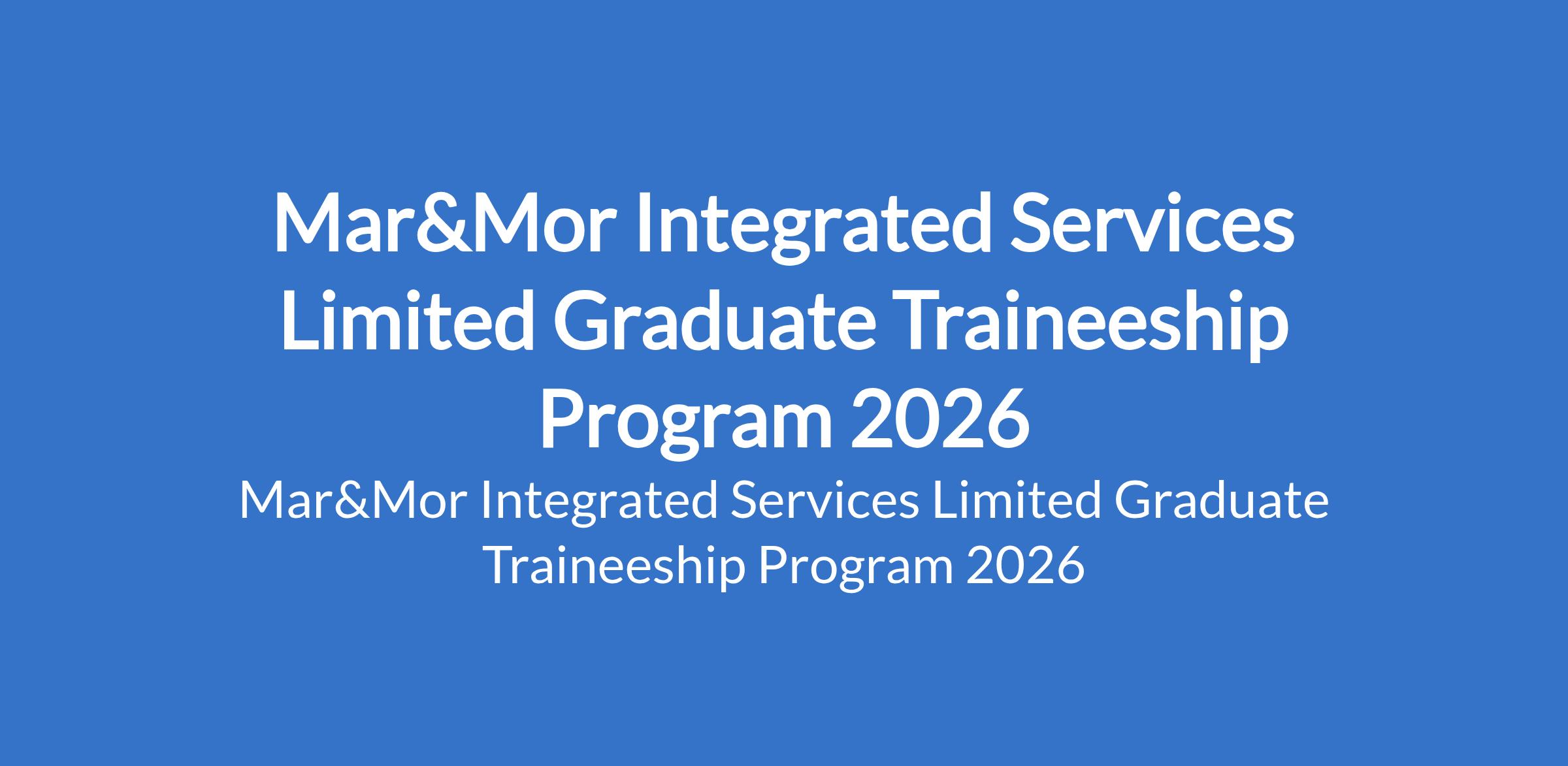 Mar&Mor Integrated Services Limited invites applications for its 2026 Graduate Traineeship Program in Lagos State. This program is designed to groom young Engineers through practical site exposure, structured learning, and mentorship, preparing you for a successful long-term career in engineering services. Interested candidates should possess a Mechanical Engineering or Electrical Engineering Degree (minimum of Second Class Upper - 2:1) and must have completed the NYSC one-year mandatory service.