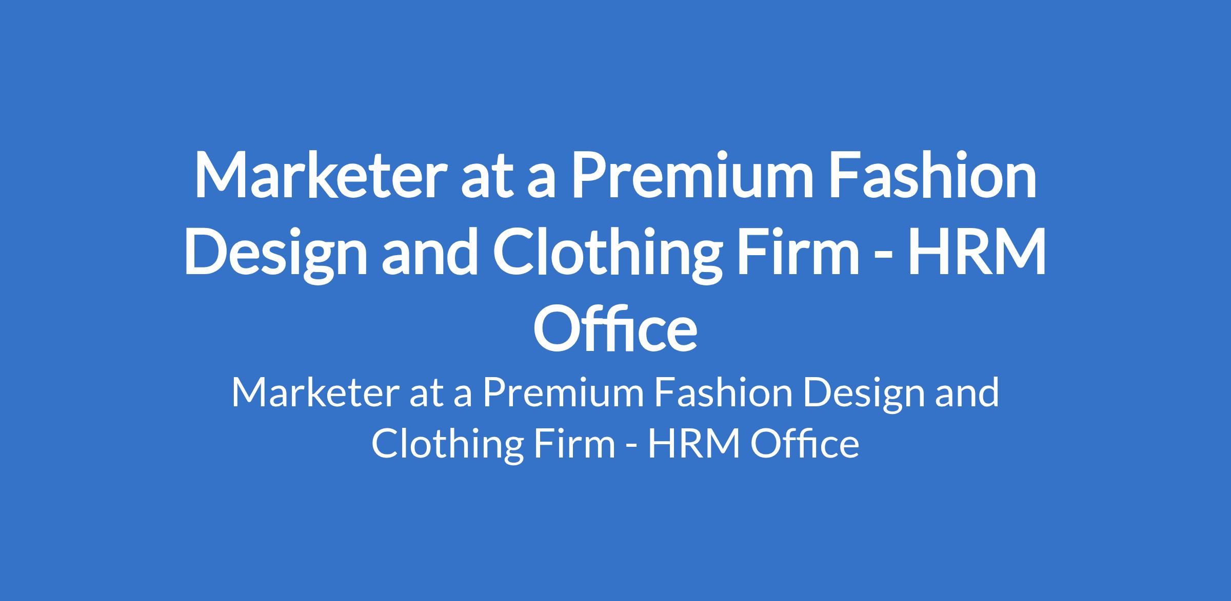 HRM Office Our client, aPremium Fashion Design and Clothing firm is recruiting to fill the position of: Marketer. The position is located in Ogudu, Ojota - Lagos State. Salary: N140,000 N170,000 / Month. Interested candidates should possess an HND / B.Sc in Marketing, Business Administration, or related field with 2 4 years experience in marketing, preferably in the fashion or luxury retail industry.