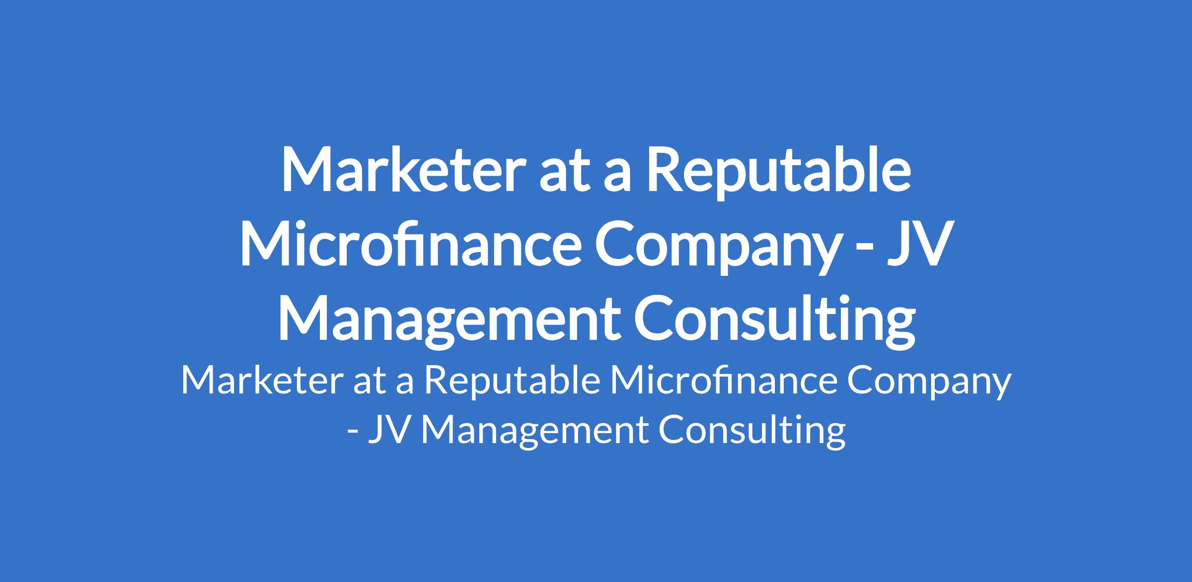 JV Management Consulting - Our client, a reputable company in the Microfinance industry is recruiting to fill the position of: Marketer. The position is located in Lagos State. Salary: N120,000 monthly. Interested candidates should possess an OND /HND /B.S.c in Marketing, Business Administration, or a related field with previous experience in marketing or sales (Microfinance experience is an added advantage).