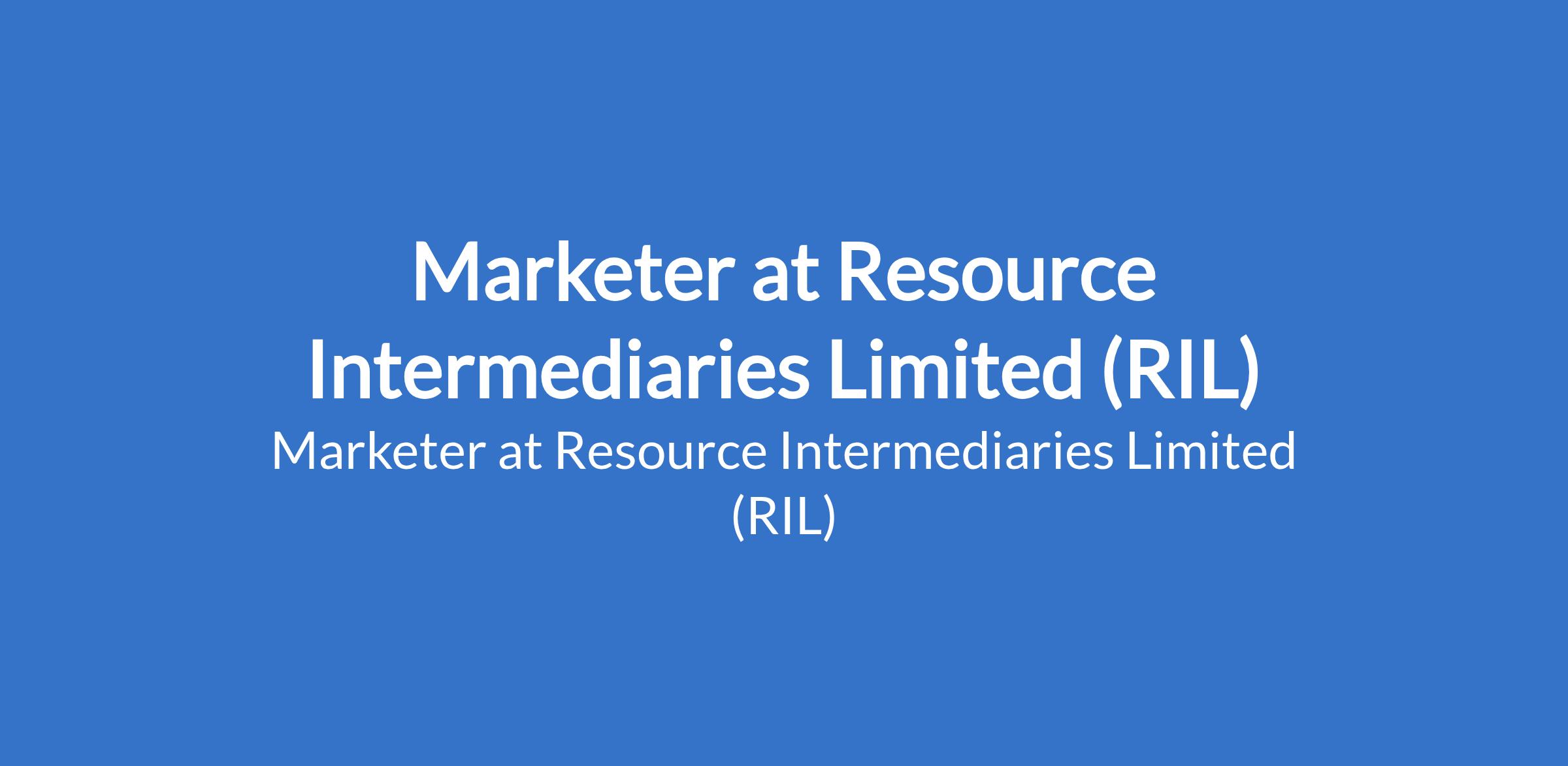 Resource Intermediaries Limited (RIL) is recruiting to fill the position of: Marketer. The position is located in Lagos State. Salary : N200,000 monthly. Interested candidates should possess an HND(Minimum of Higher Credit) qualification with experience and must not be more than 30 years old.