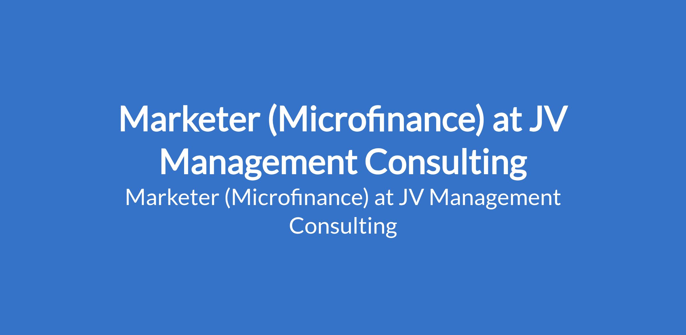 JV Management Consulting is recruiting to fill the position of: Marketer (Microfinance). The position is located in Apapa Lagos, State. salary: N120,000 per month. Interested candidates should possess a Bachelors Degree in Marketing, Business Administration, or related fields with experience in the financial or microfinance sector is an advantage.