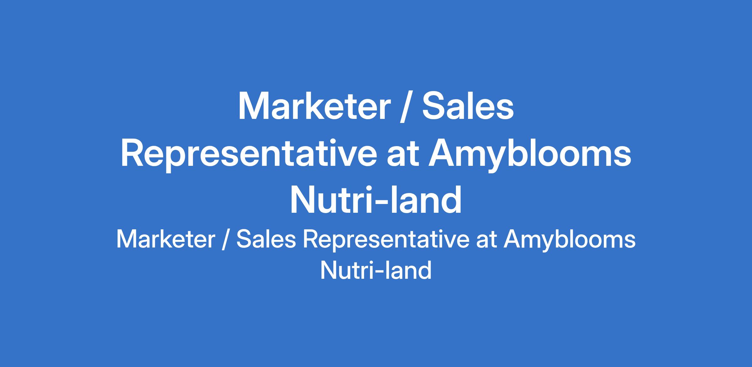 Amyblooms Nutri-land is recruiting to fill the position of: Marketer / Sales Representative. The position is located in Port Harcourt, Rivers State. Salary: N70,000 - N200,000 / month. Interested candidates should possess relevant qualifications and must be based in Port Harcourt.