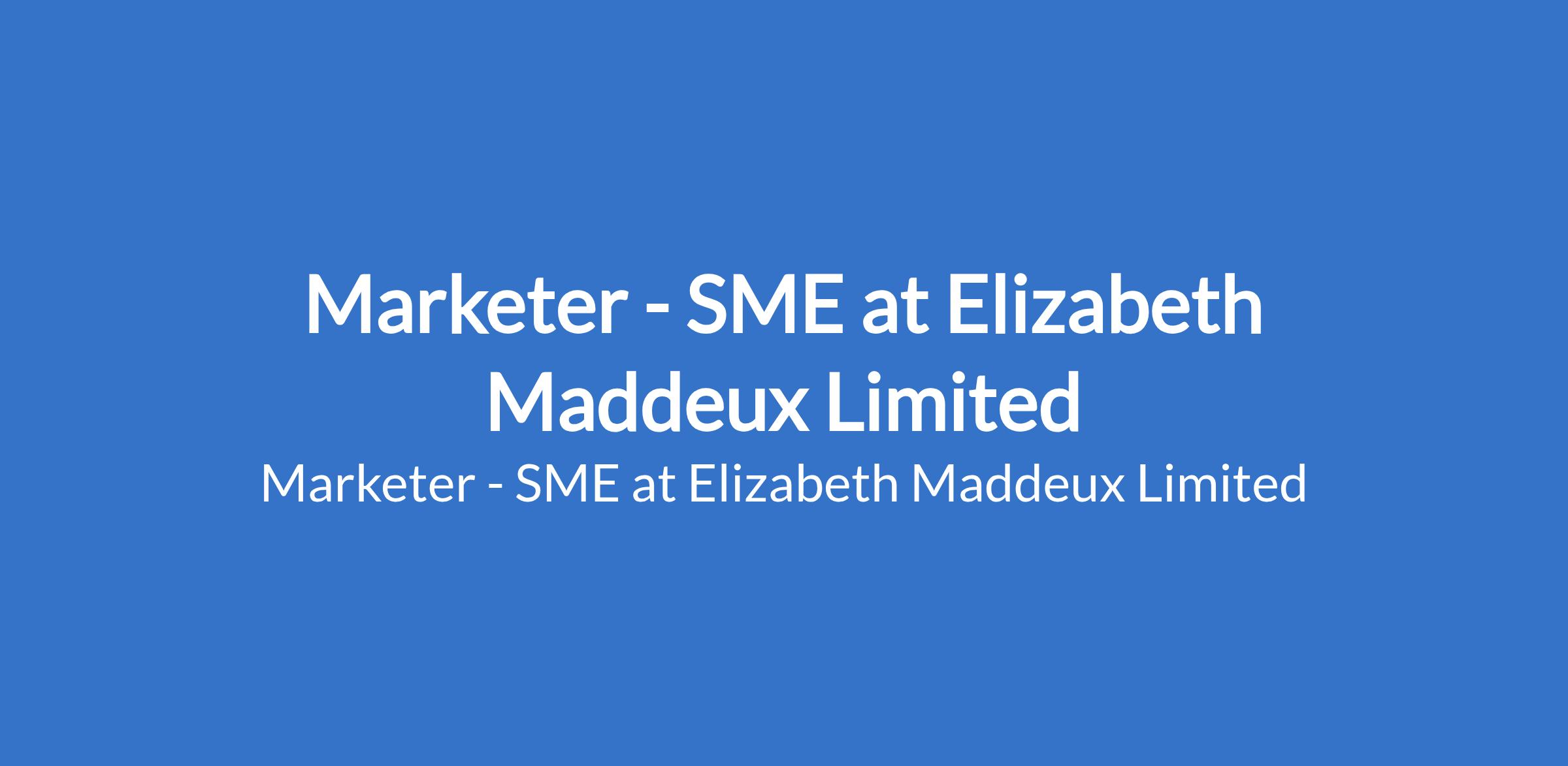 Elizabeth Maddeux Limited is recruiting to fill the position of: Marketer - SME. The position is located in Ikeja, Lagos State. Salary: N300,000 per month. Interested candidates should possess a B.Sc. or HND Degree in Business Administration, Marketing, Banking & Finance, Economics, or any related discipline with 35 years' experience in SME banking, business development, or financial sales